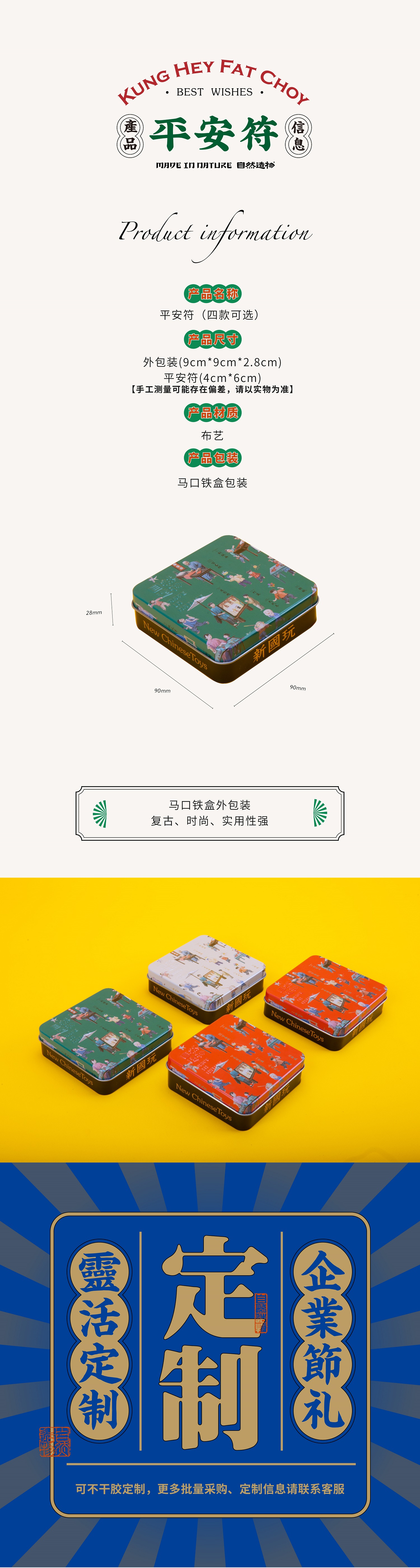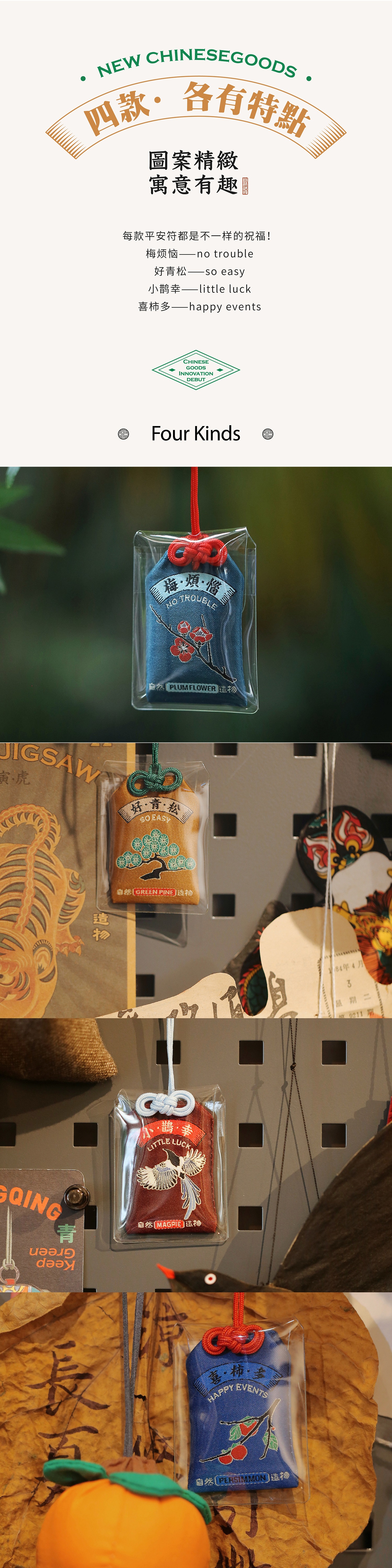 自然造物新年趣味祈福锦囊中国风刺绣平安符锦囊御守挂件4款可选