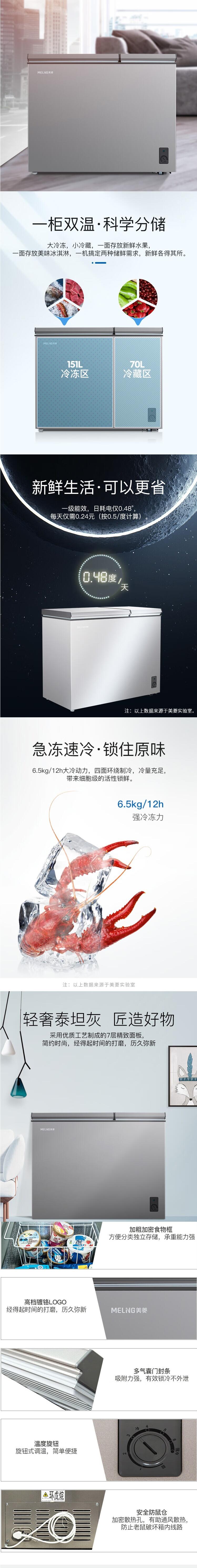 美菱(MeiLing)(252042)双温冷柜 冷藏冷冻双箱小冰柜家商两用节能低噪母乳母婴大容量冰箱 低霜 BCD-221DTCS【PCM胆】典雅灰 221L