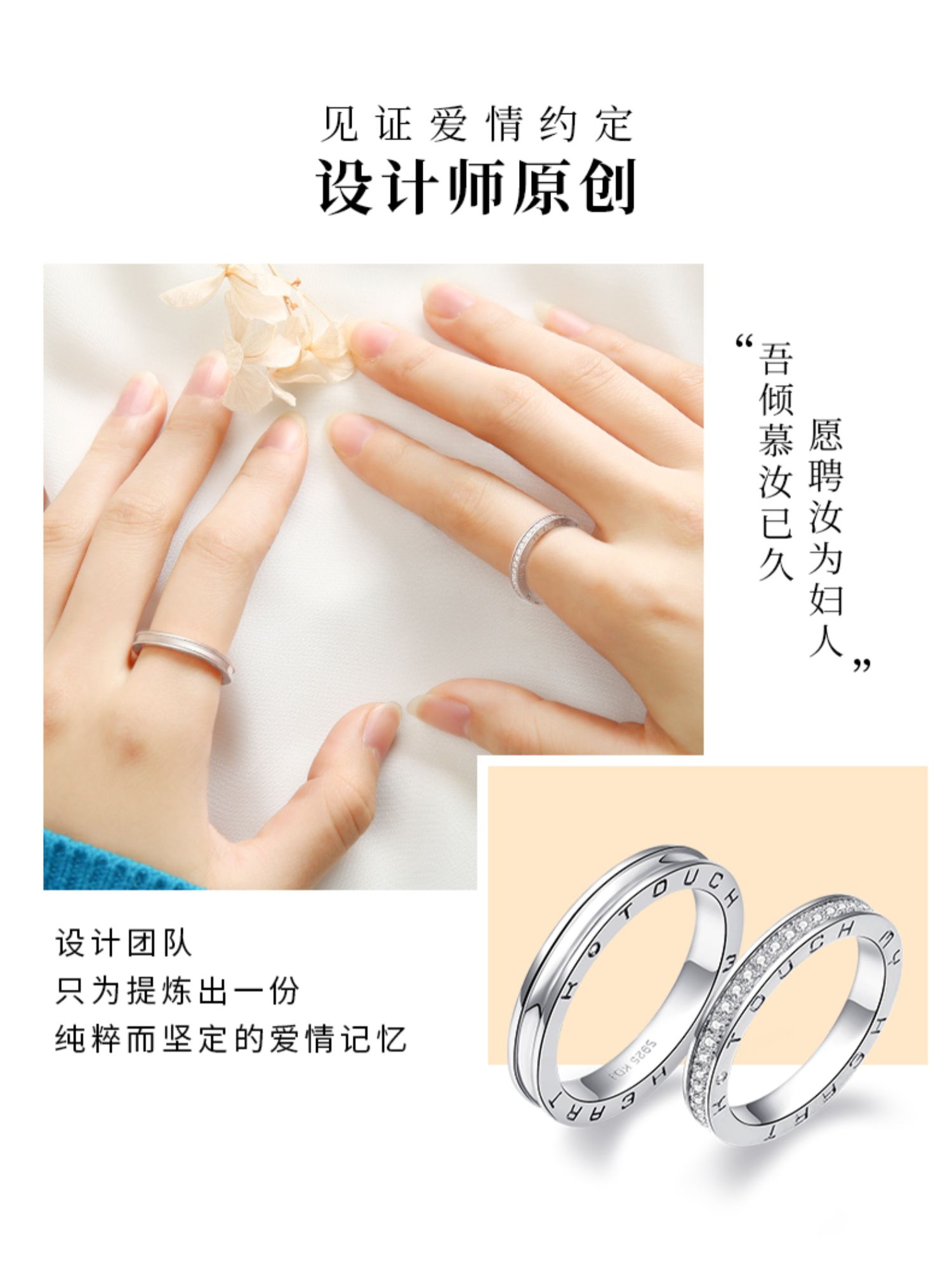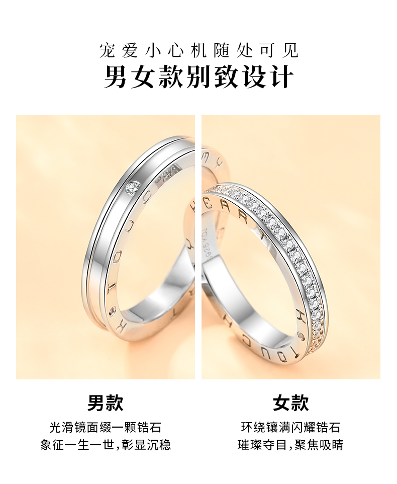KADER 知否系列 情侣戒指纯银男女一对轻奢对戒小众设计纪念生日礼物送女友