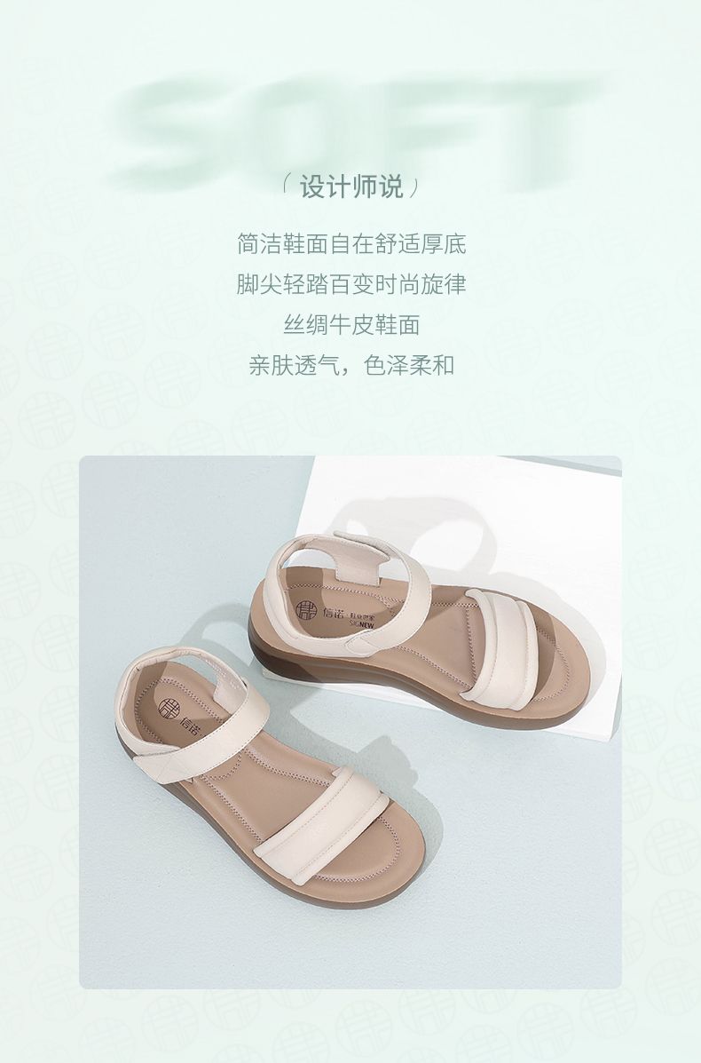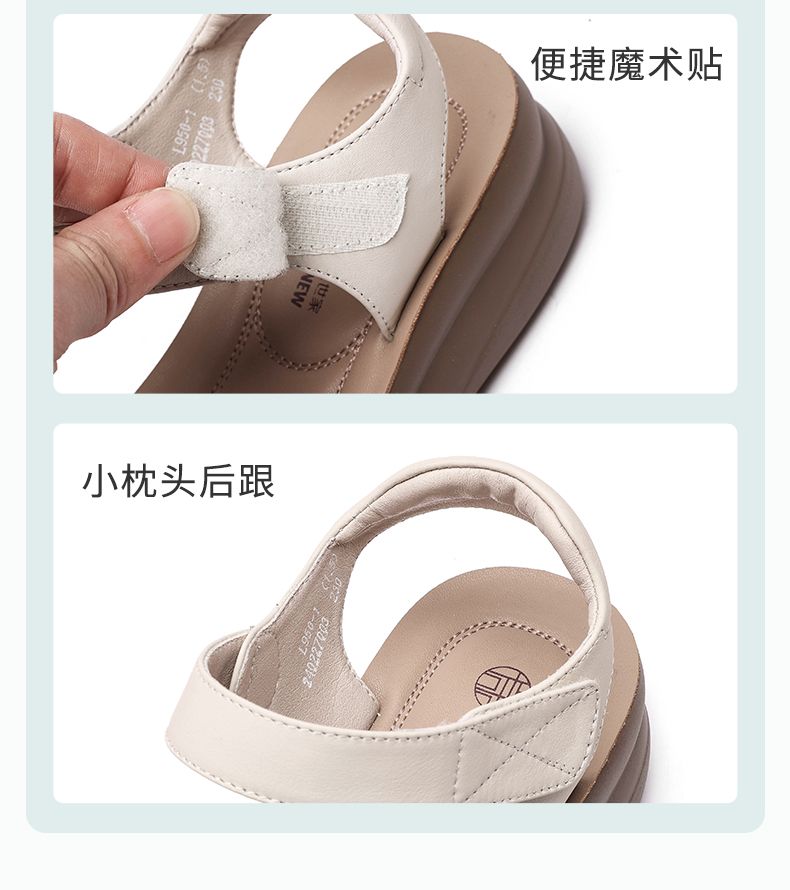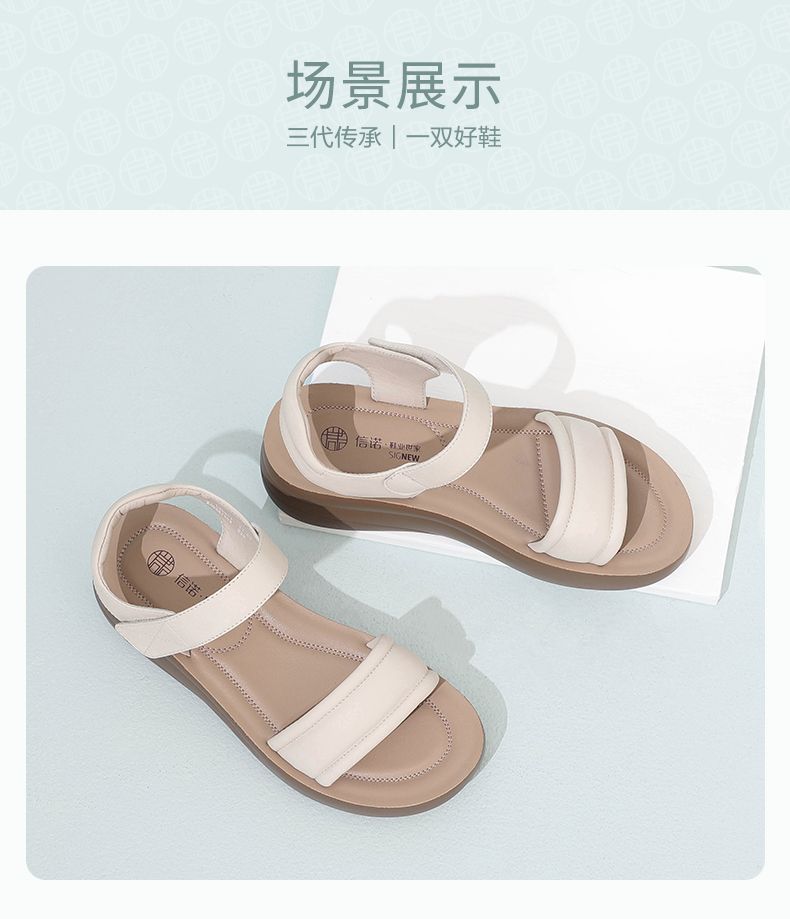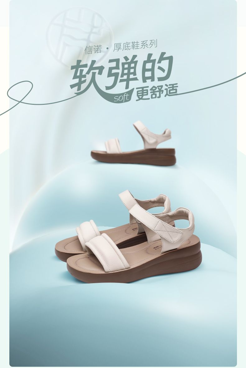 信诺 厚底舒适凉鞋 2024夏季新款真皮外穿增高软底中年妈妈鞋女鞋L950-1