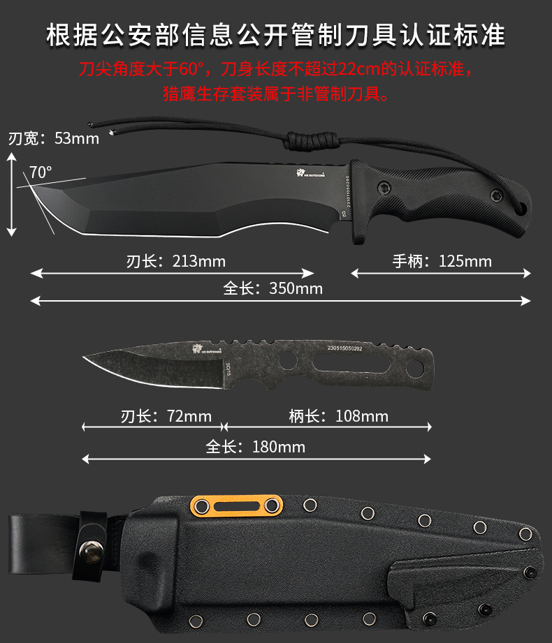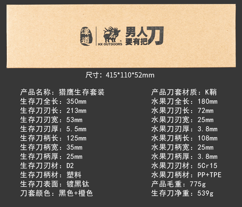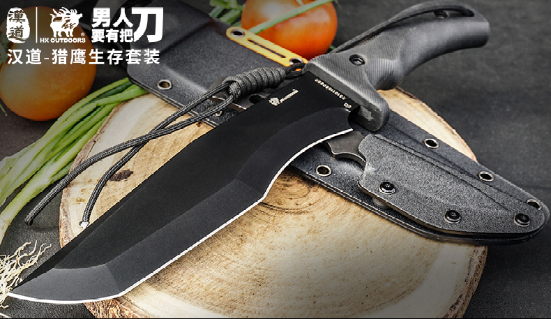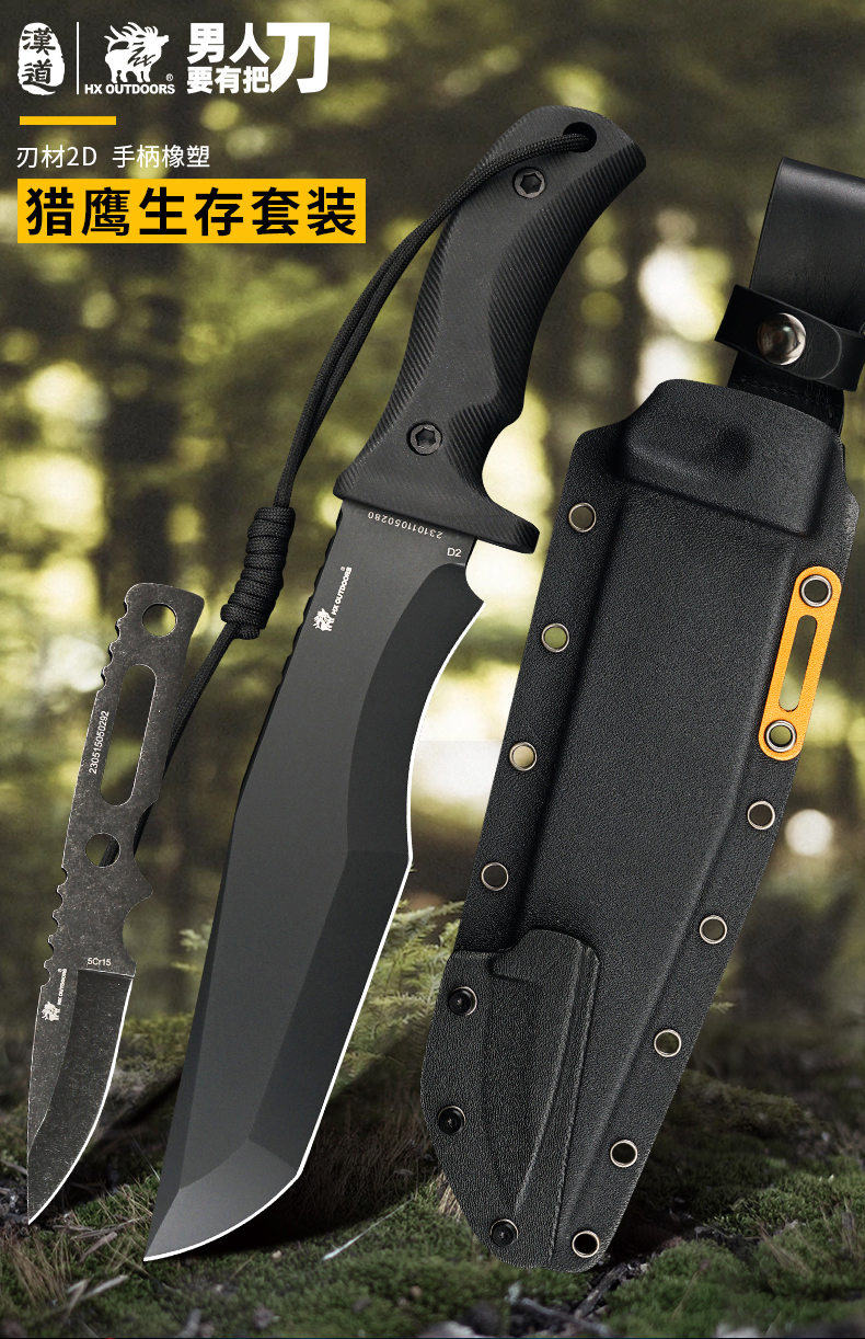 汉道【猎鹰生存套装】D2钢户外高硬度生存直刀野外求生刀随身生存刀套装