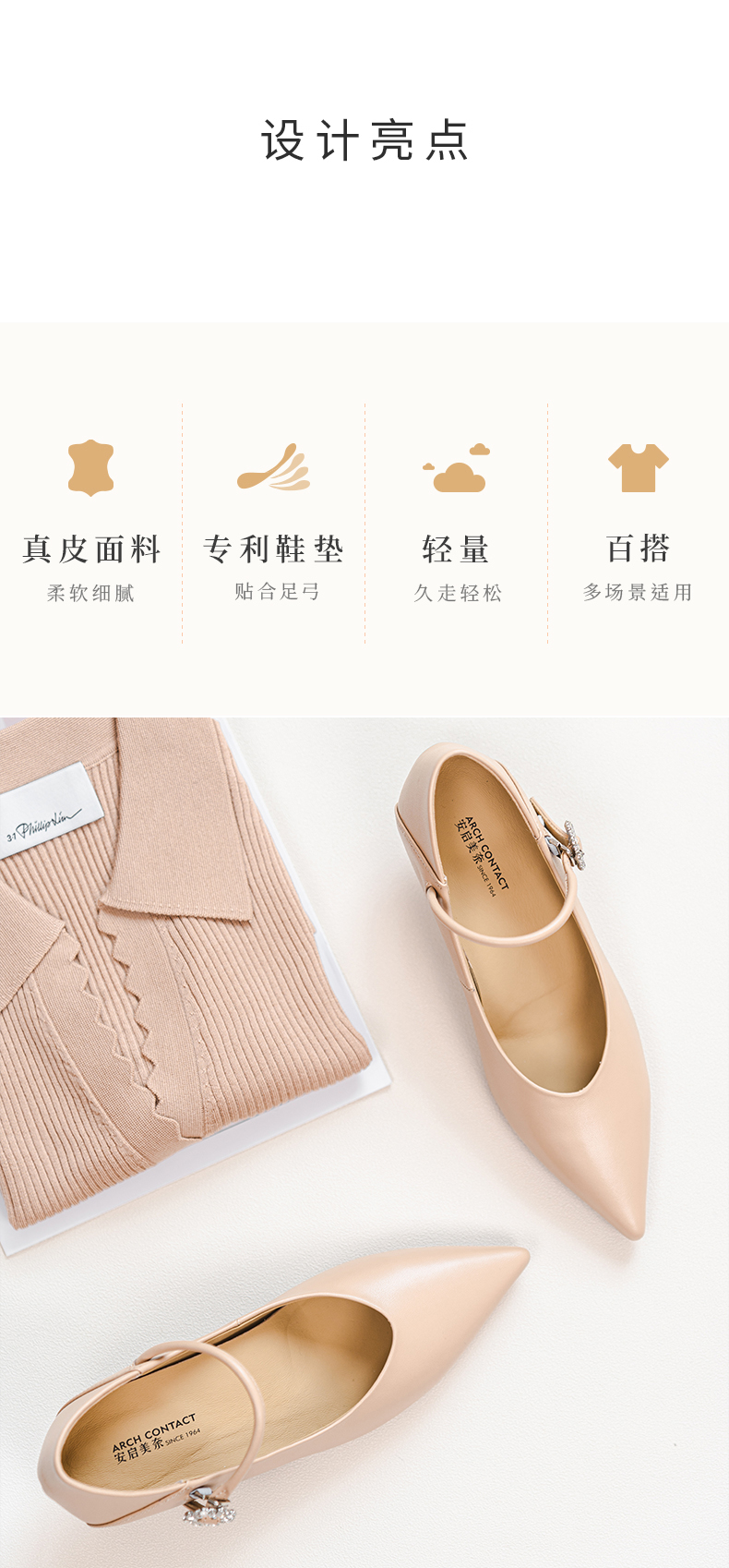 ARCHCONTACT安启美奈浅口优雅知性细带通勤小高跟52839