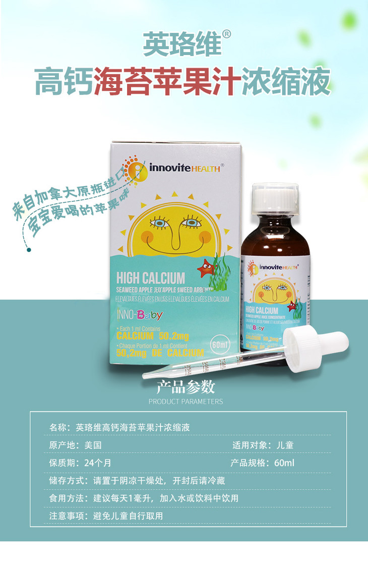 英珞维加拿大进口天然浓缩海藻钙滴剂 婴幼儿液体钙宝宝补钙60ml