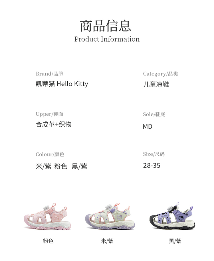 HelloKitty女童夏季包头防滑软底运动凉鞋儿童公主沙滩鞋28-35 K4526876