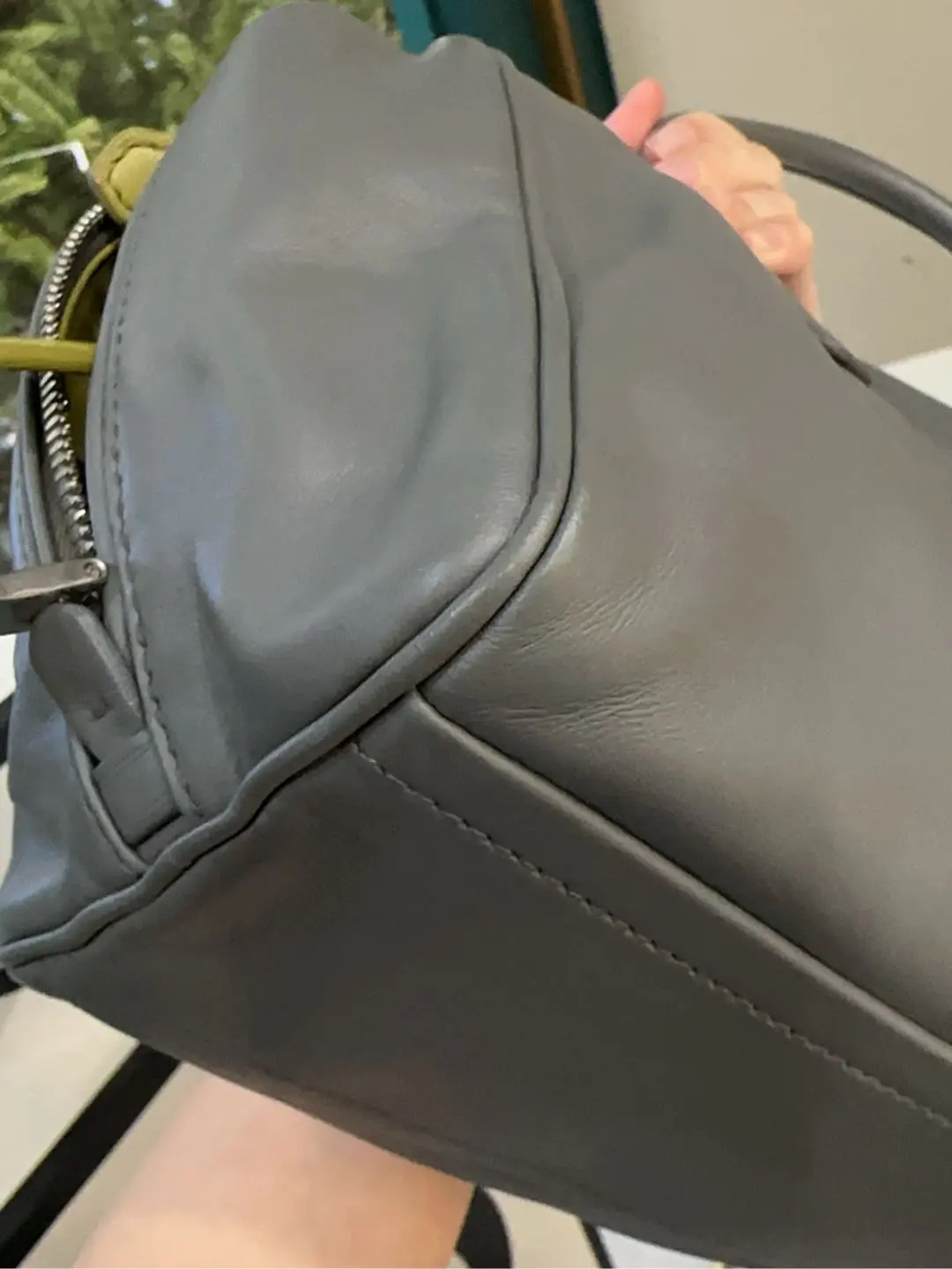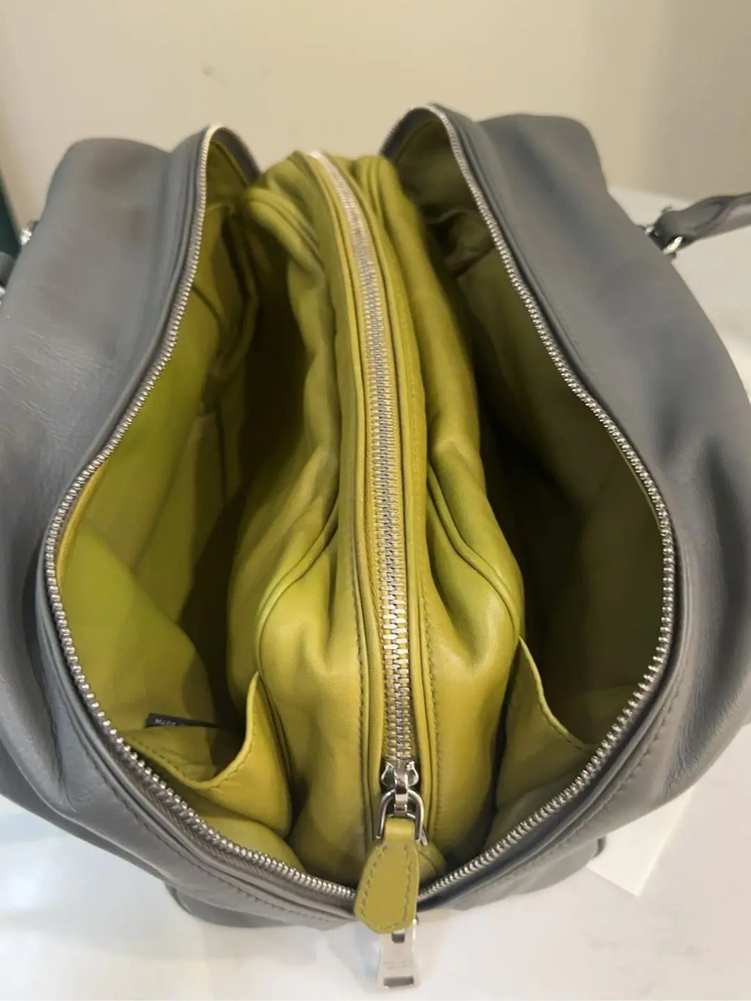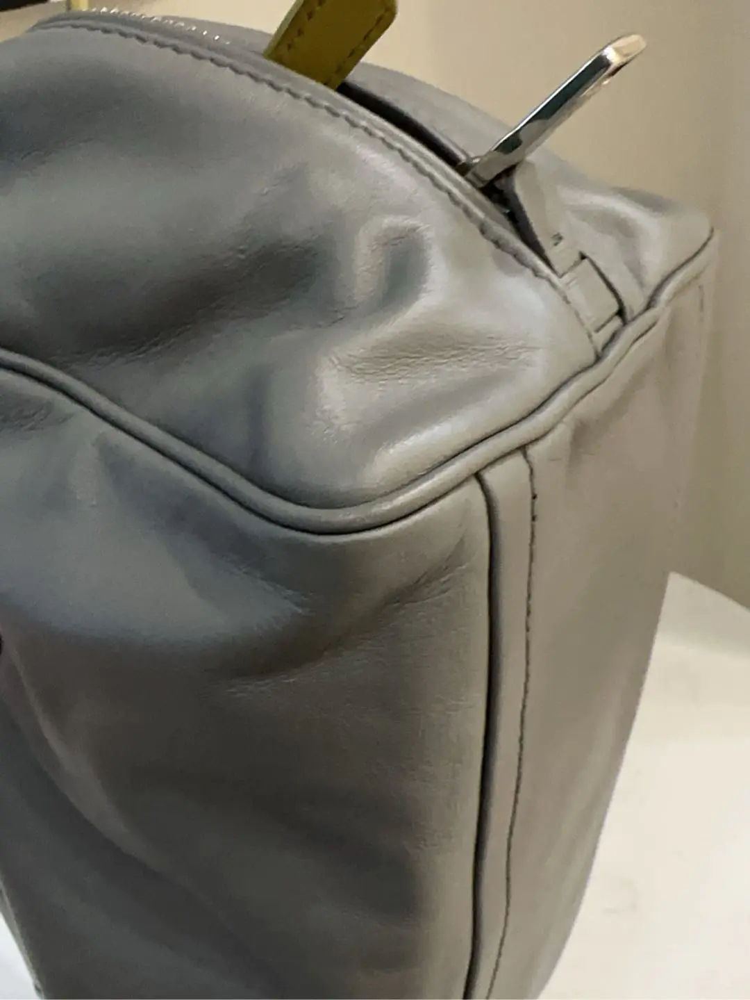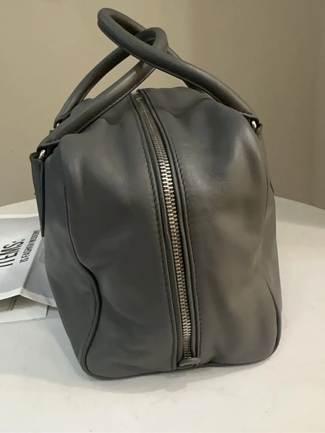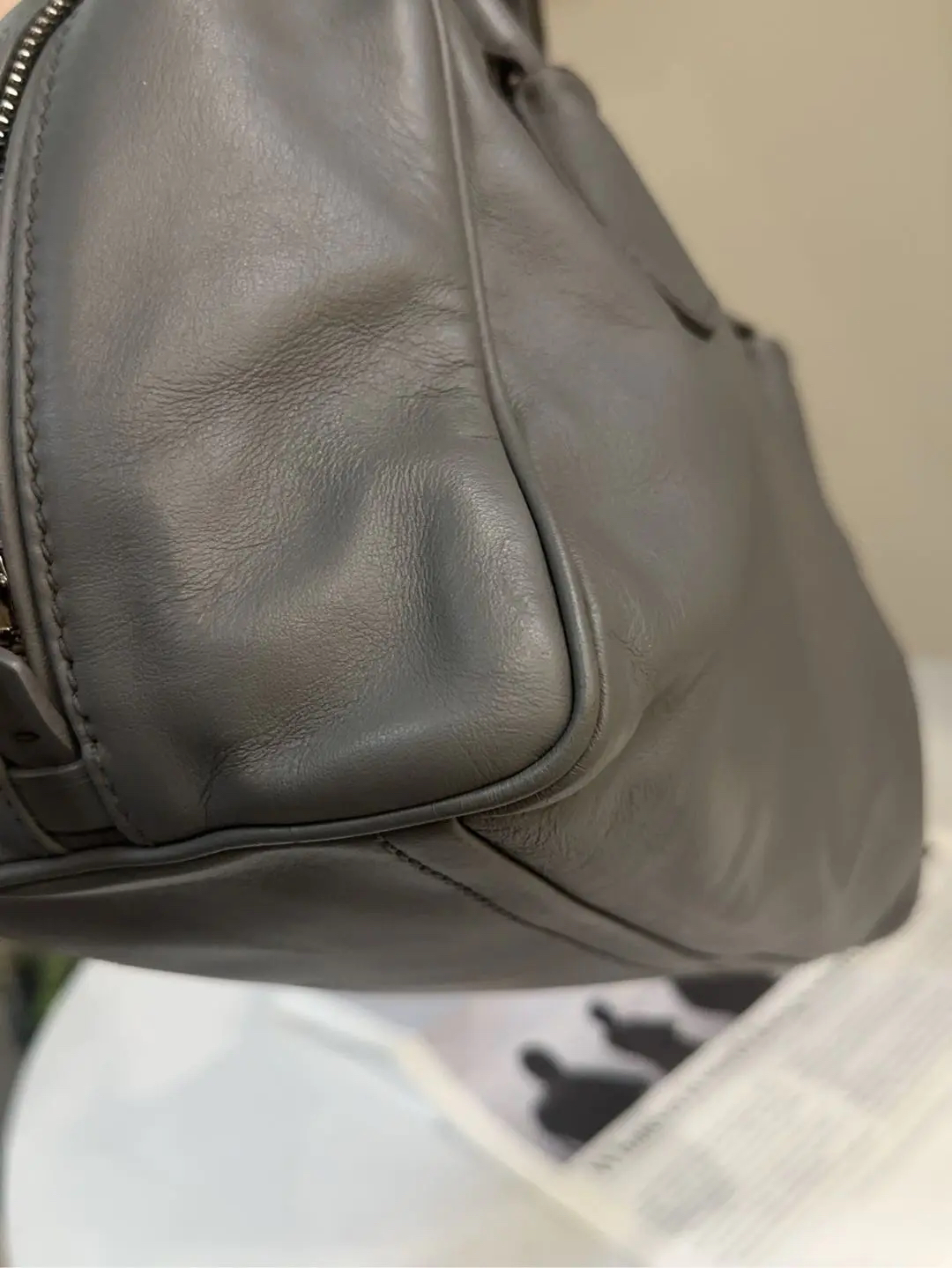 【商品详情】正品二手 Prada Inside 灰色 牛皮 中号 保龄球包 🛍️97新 26*18 。中性性冷风