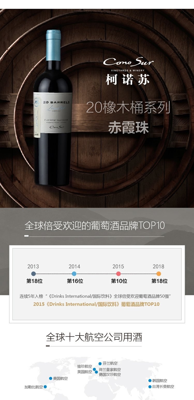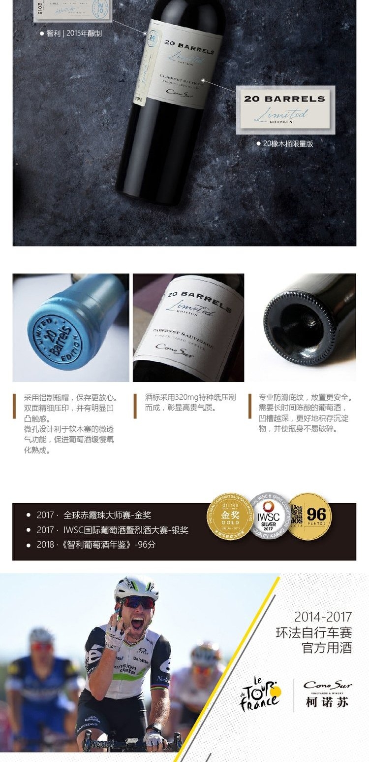 【臻选好酒】柯诺苏 智利进口红酒整箱送礼 Cono Sur 20桶限量版赤霞珠干红葡萄酒750ml 单支装