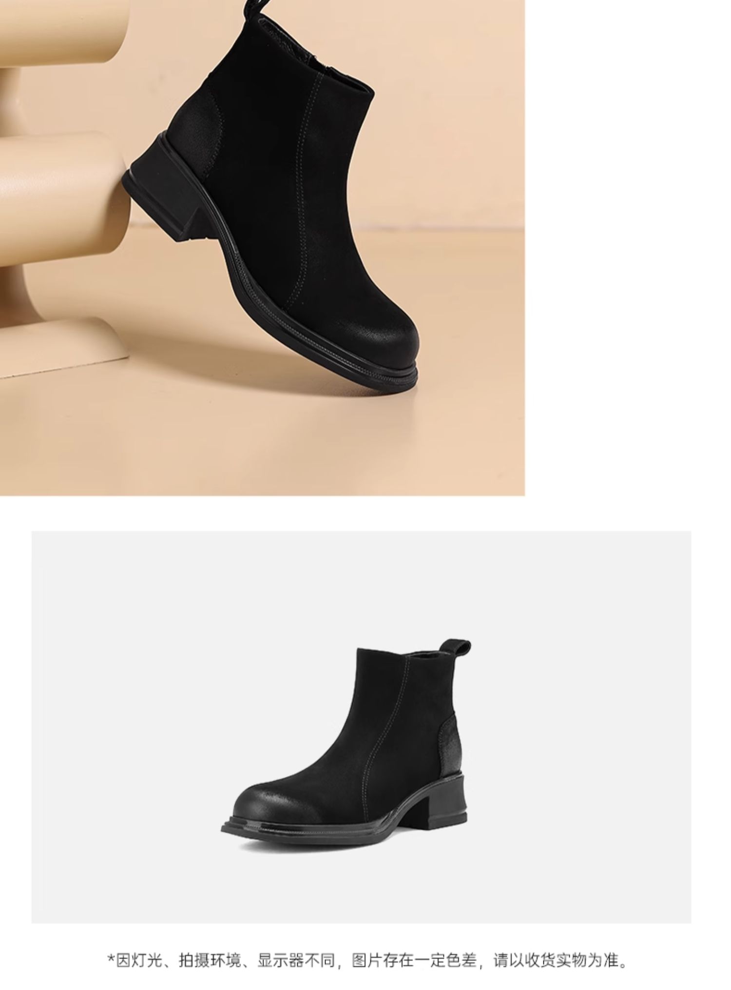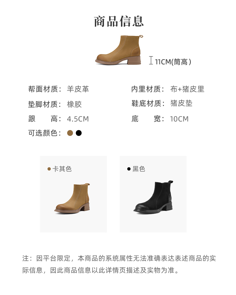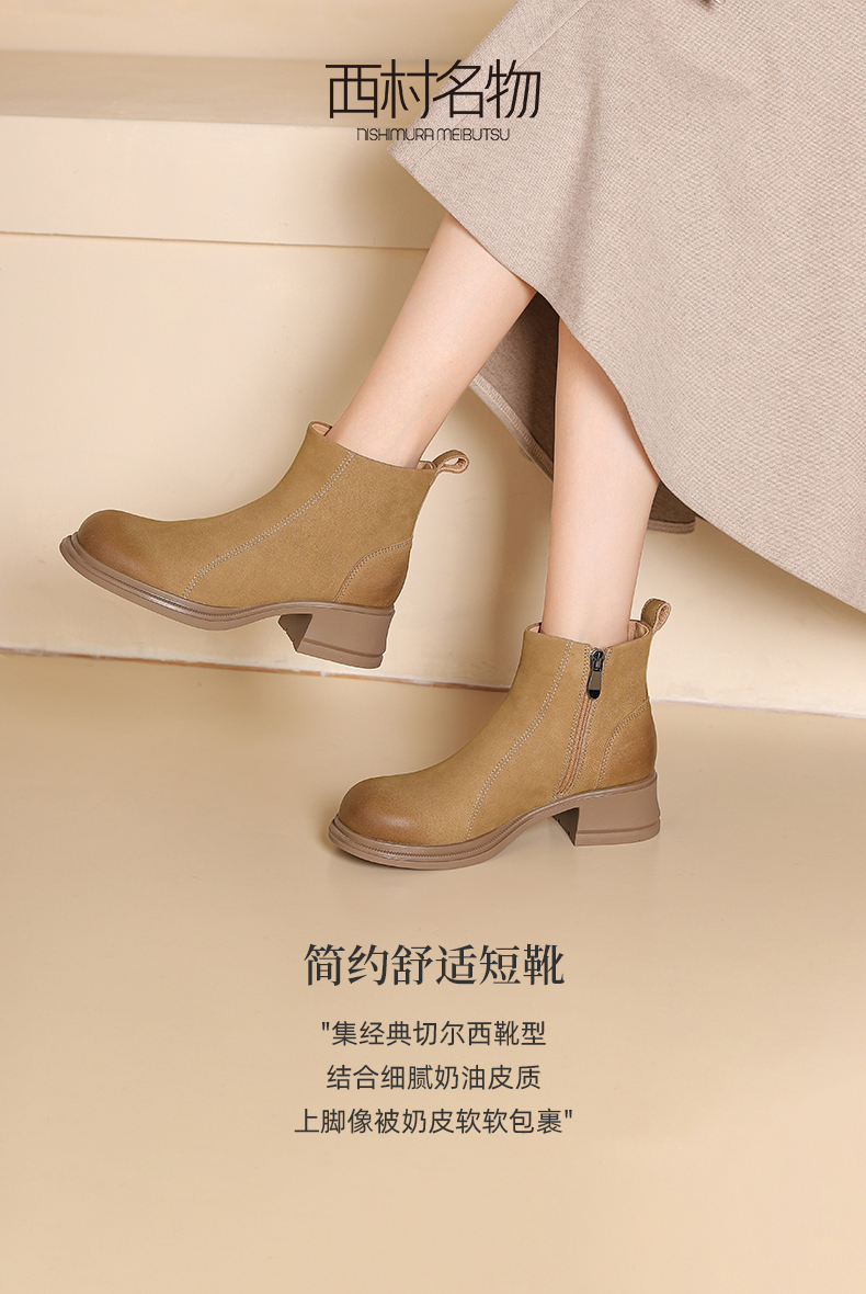 西村名物2024冬季新款厚底粗跟真皮短靴简约舒适马丁靴女X24DS47401