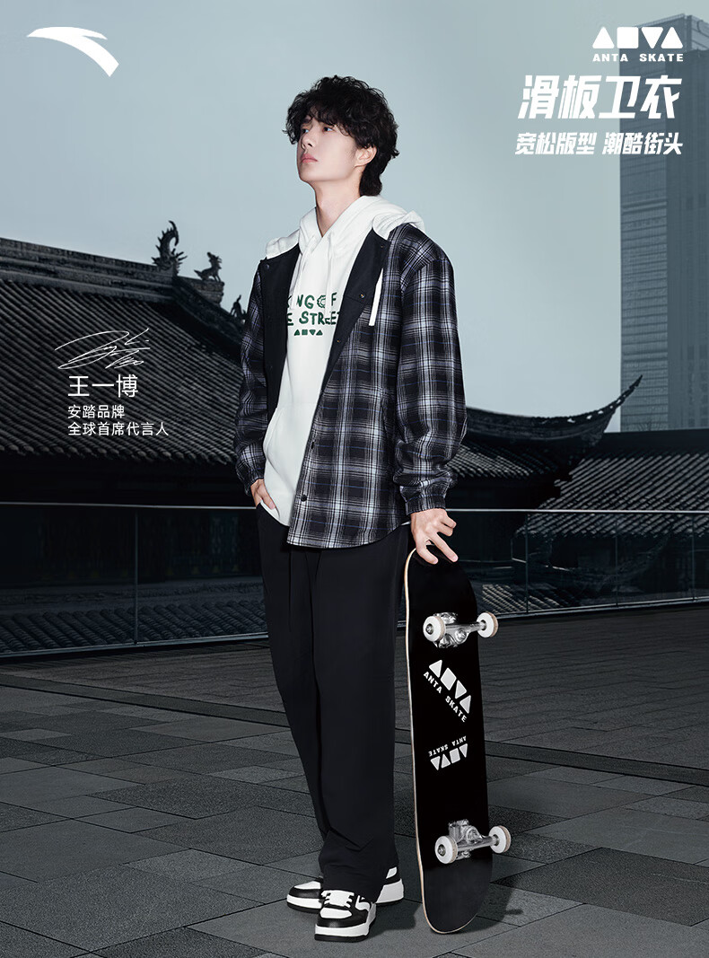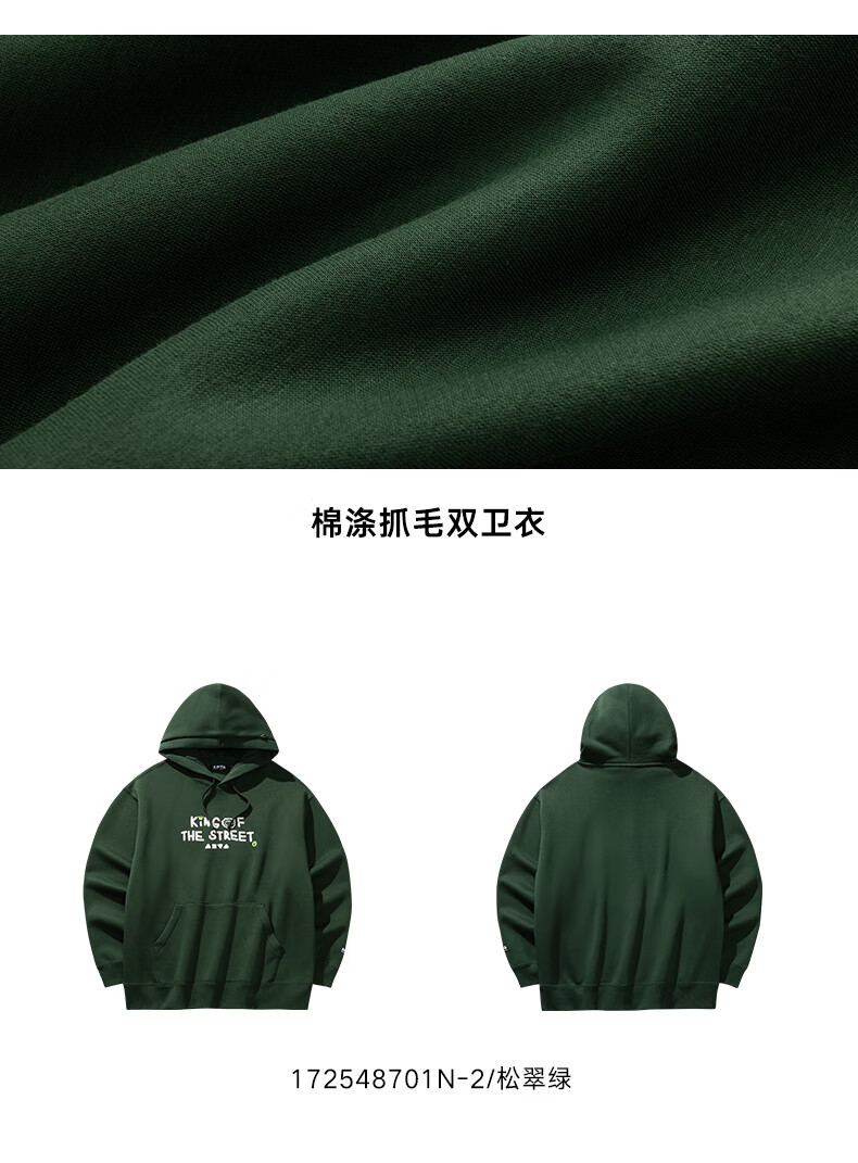 安踏【王一博同款】轻暖绒连帽卫衣滑板系列男女休闲上衣172548701N 【王一博同款】松翠绿-2