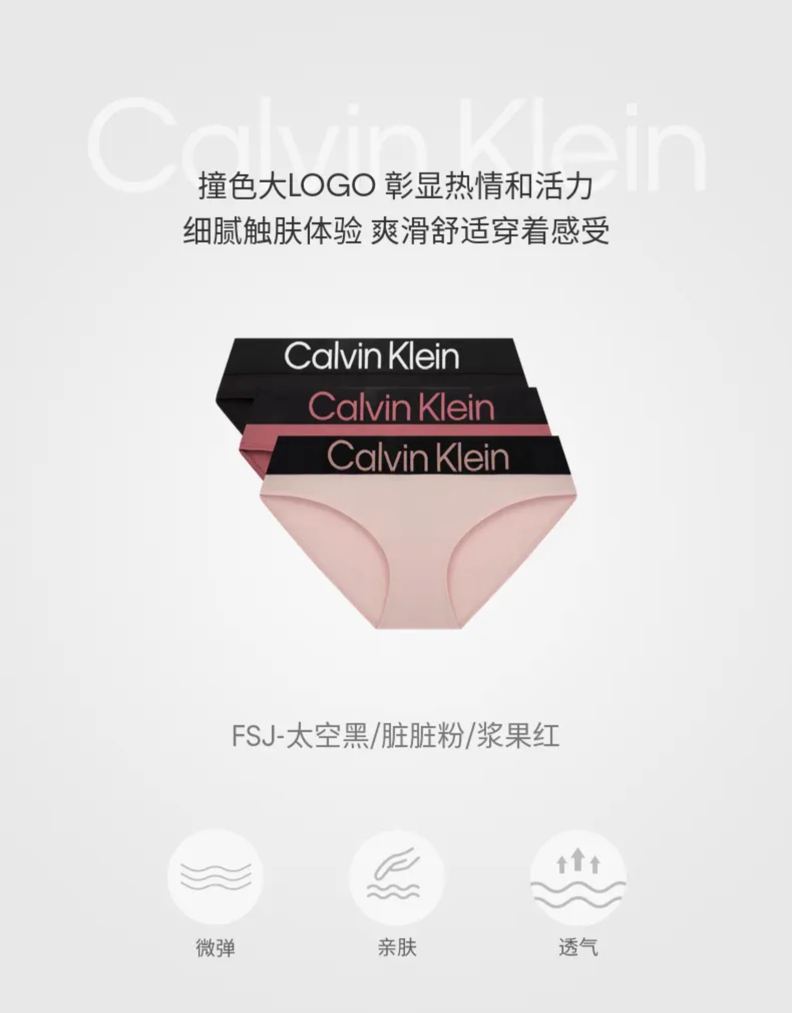 【海南专供价】CKU新款女士三条装撞色提花轻薄比基尼三角内裤QP3075O