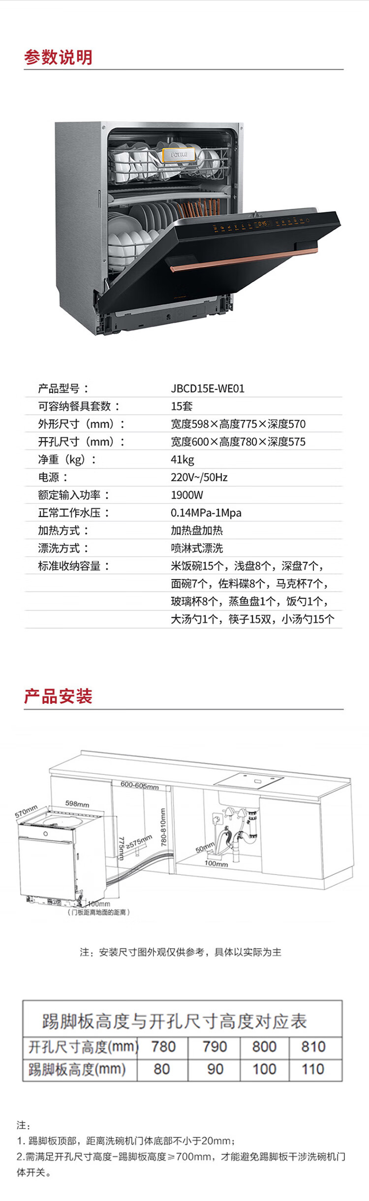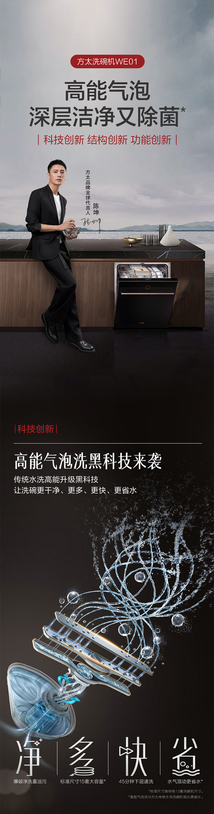 【线下同款】方太洗碗机嵌入式家用高能气泡洗15套洗消烘一体JBCD15E-WE01 15套大容量。 嵌入式WE01洗碗机