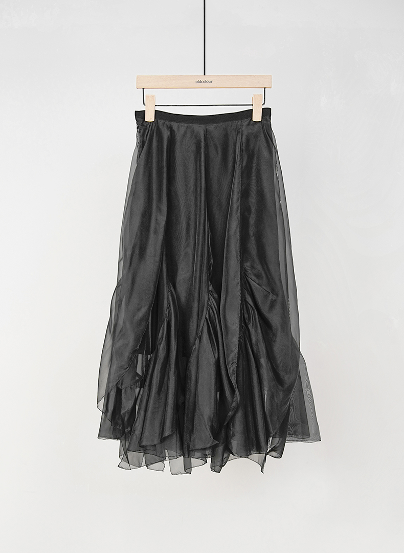 oldcolour黑色网纱气质时尚蓬蓬中长款半身裙女O23063372