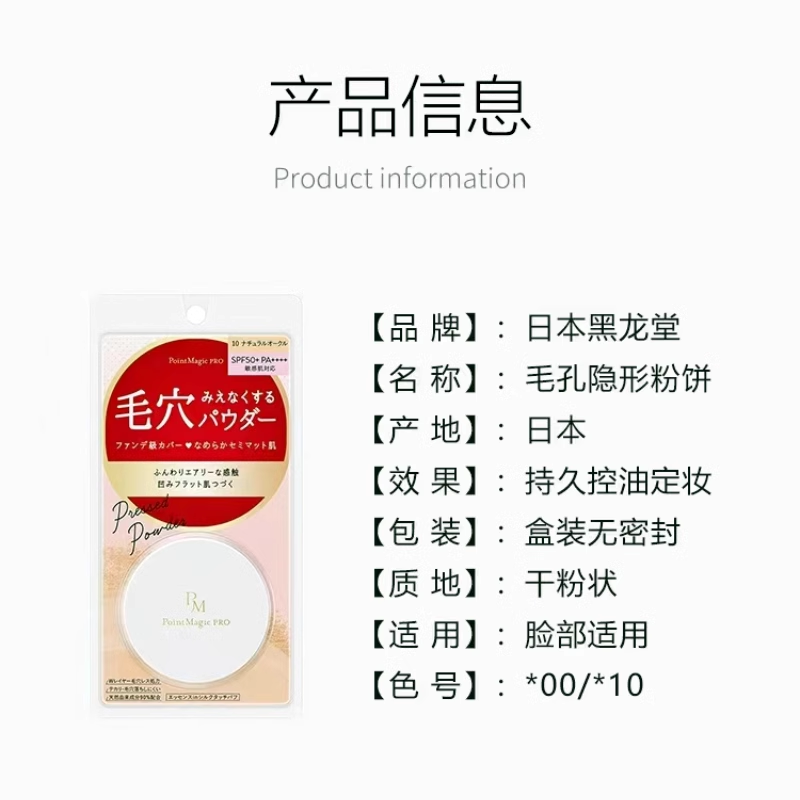 【跨境】黑龙堂PointMagicPRO毛孔隐形遮瑕粉饼C10 自然肤色 SPF50+ 6g