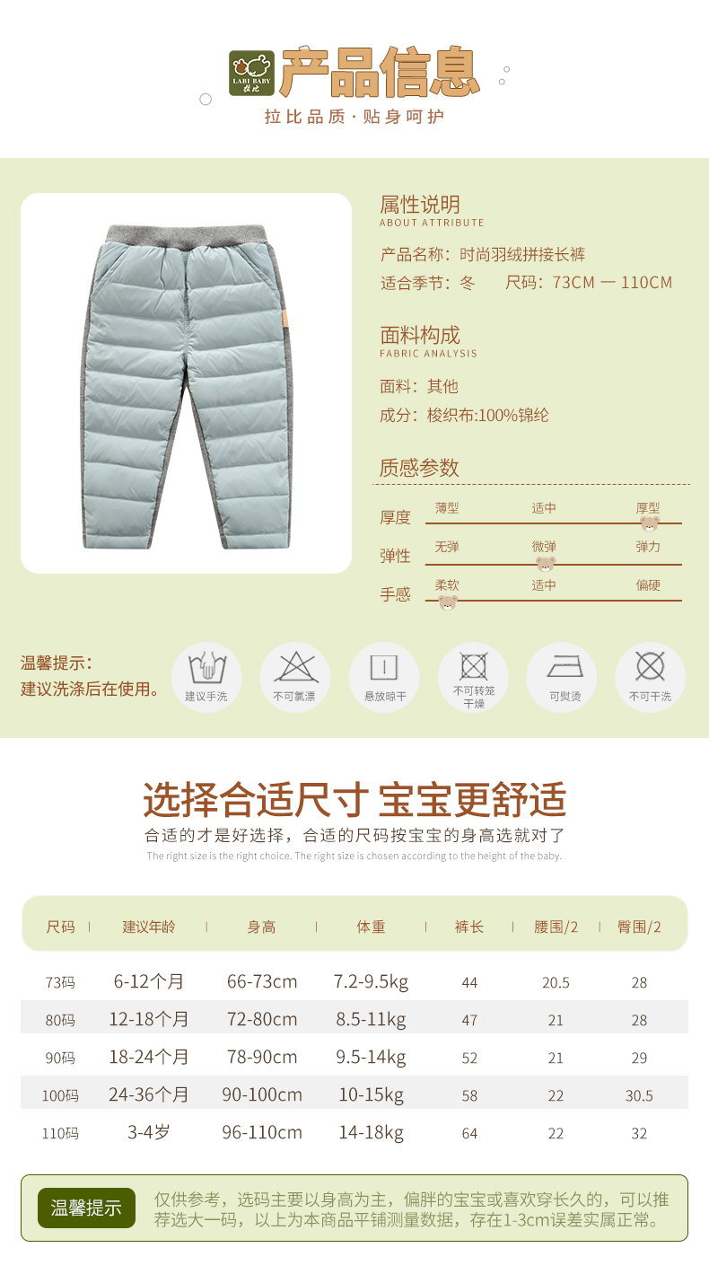 拉比-童衣类(冬)C9时尚羽绒拼接长裤玫瑰红