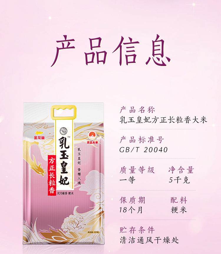 金龙鱼乳玉皇妃方正长粒香大米5kg(塑料袋)-YS
