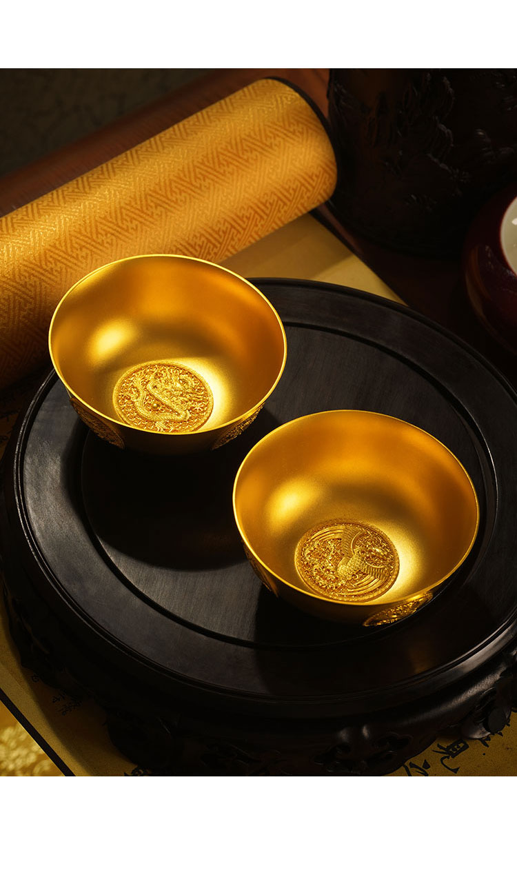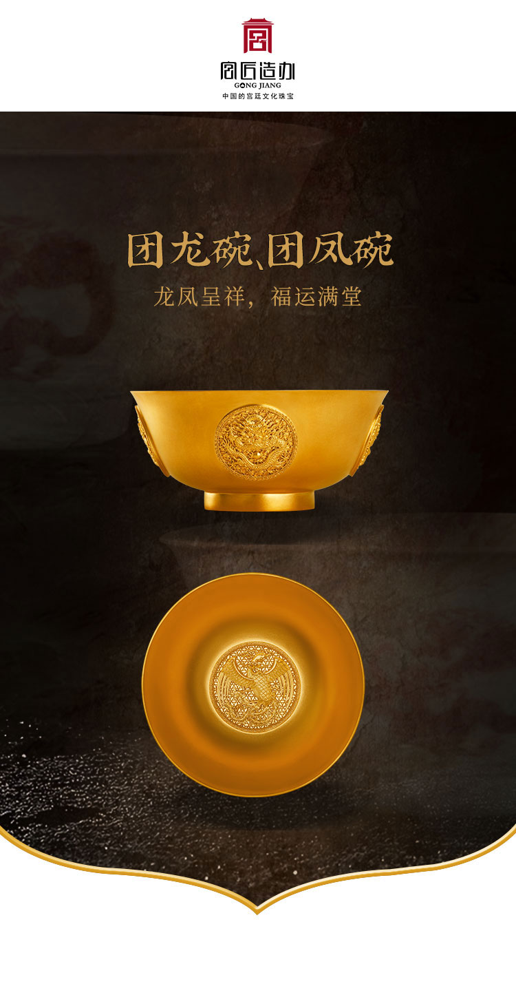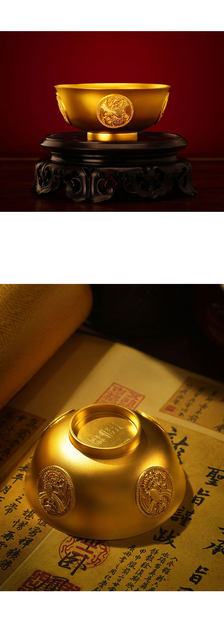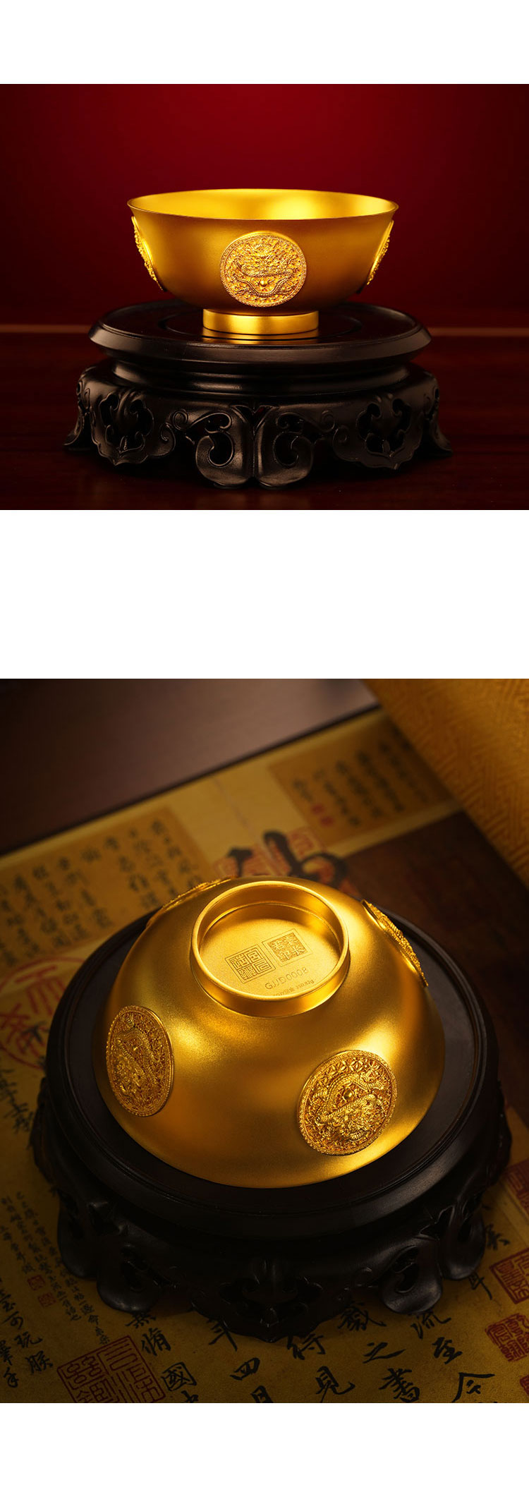 宫匠造办 宫匠金典大师系列 黄金团龙团凤碗黄金摆件
