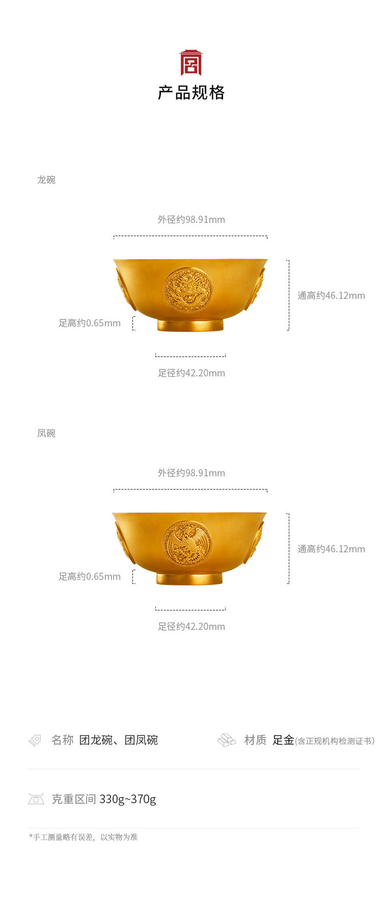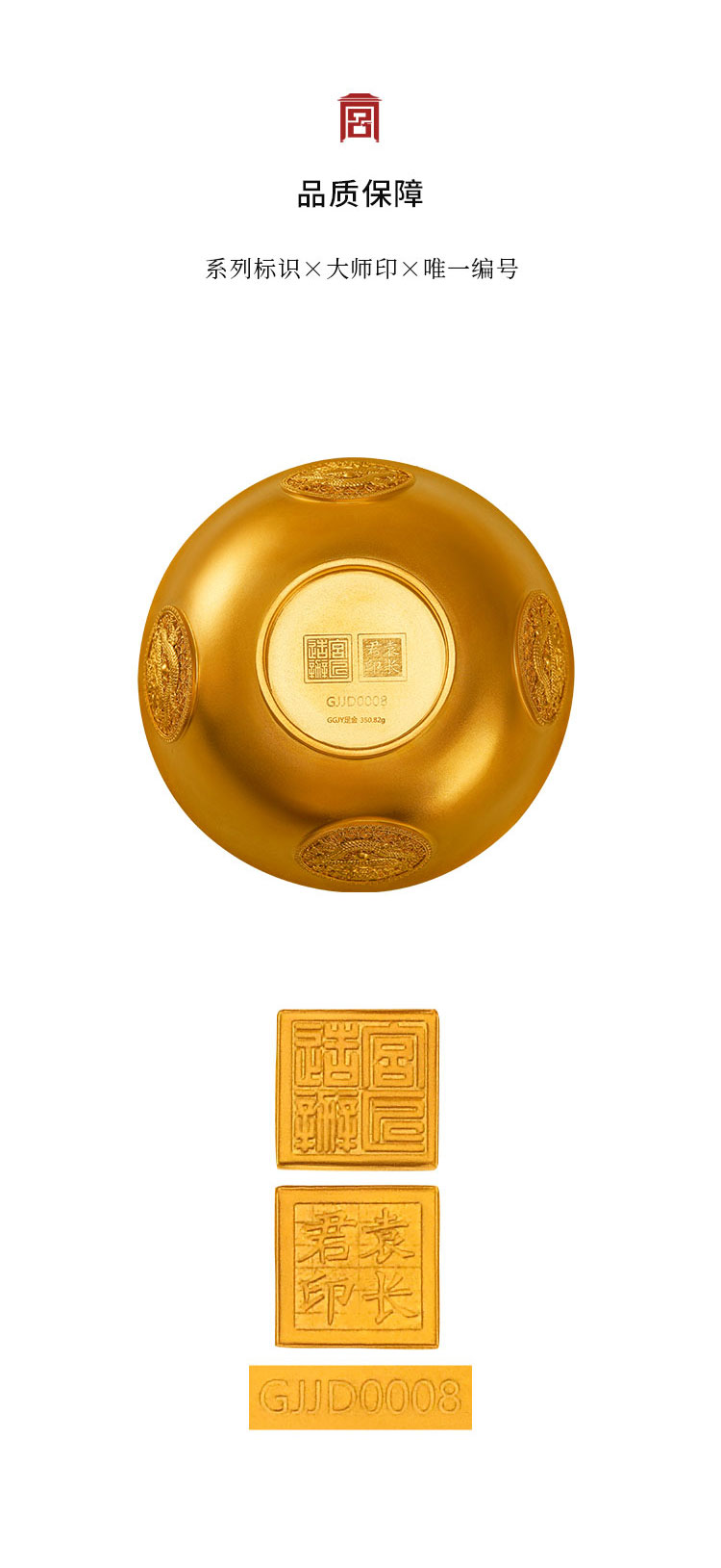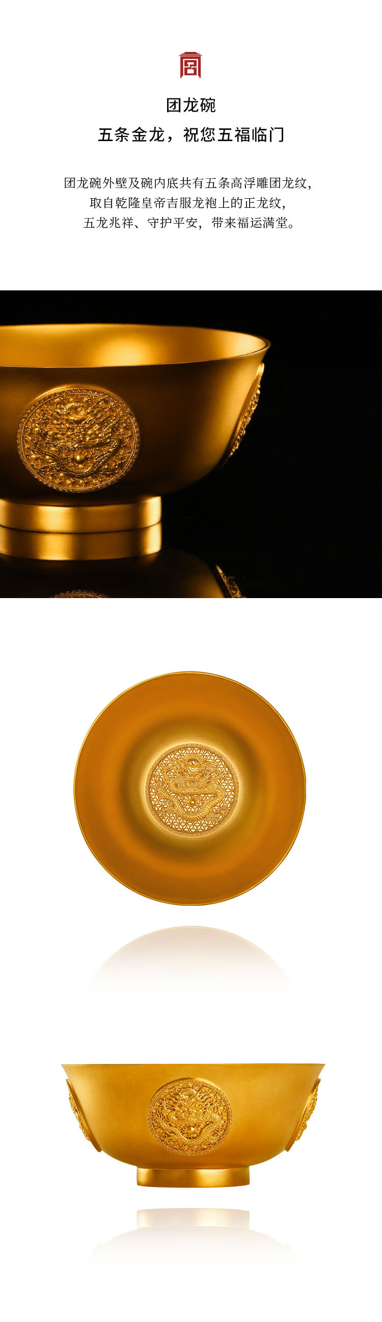 宫匠造办 宫匠金典大师系列 黄金团龙团凤碗黄金摆件