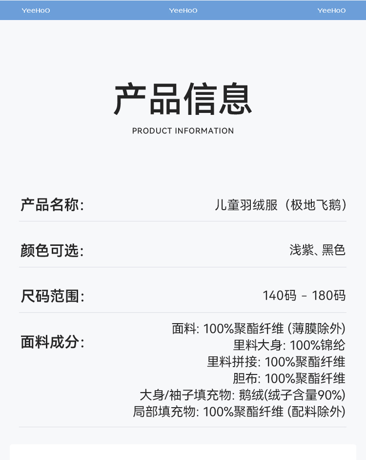 【三防旗舰款白鹅绒】【英氏】【140-180】男女童运动滑雪防水儿童鹅绒服