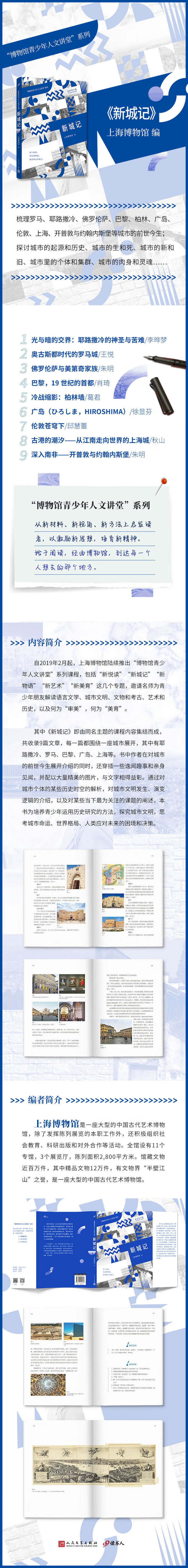 本书由上海博物馆组织的“博物馆青少年人文讲堂”系列活动的课程内容集结而成,共收录9篇文章,每一篇都围绕一座城市展开,其中有耶路撒冷、罗马、巴黎、广岛、上海等。书中作者在对城市的前世今生展开介绍的同时,还穿插一些逸闻趣事和亲身见闻,并配以大量精美的图片,与文字相得益彰。通过对城市个体的某些历史时空的解析,对城市文明发生、演变逻辑的介绍,以及对某些当下最为关注的课题的阐述,本书为培养青少年运用历史研究的方法,探究城市文明,思考城市命运、世界格局、人类应对未来的困境和决策。