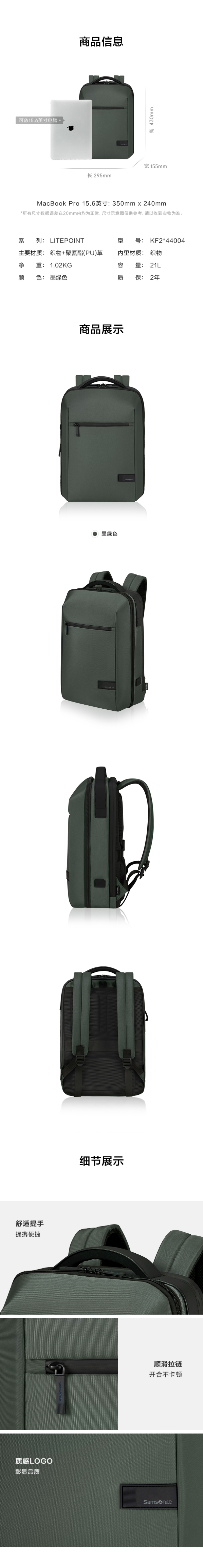 新秀丽LITEPOINT系列商务双肩包KF2