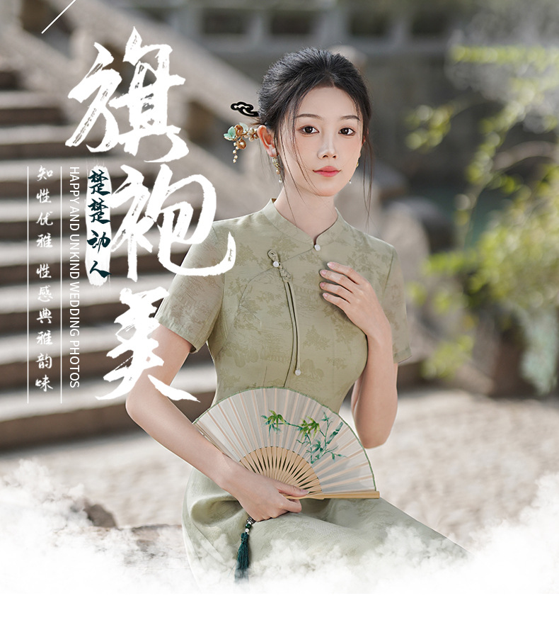 2025新款新中式年轻款少女小清新夏季日常通勤复古国风旗袍GSJ9389