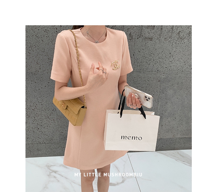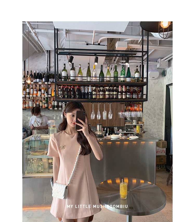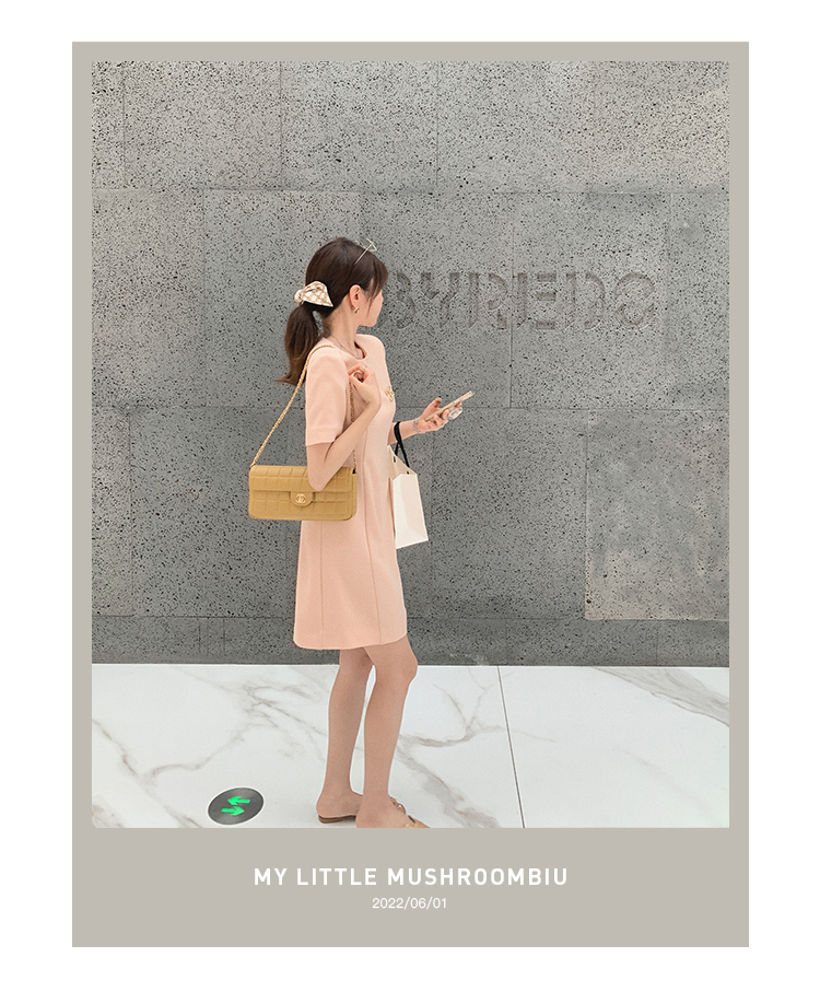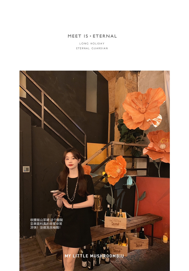 金蘑菇菇【淡香山茶】纸片人上班通勤简约醋酸优雅连衣裙气质收腰胸针自己搭配的哦~