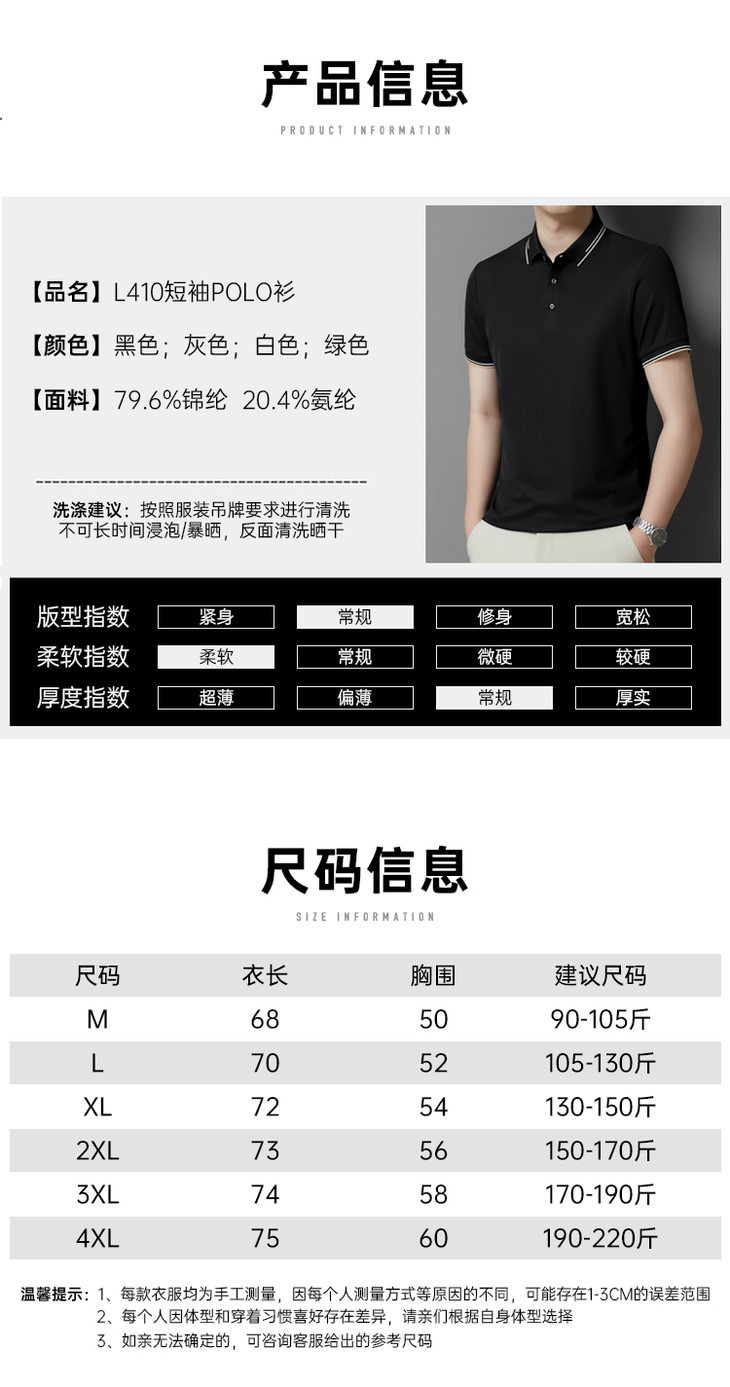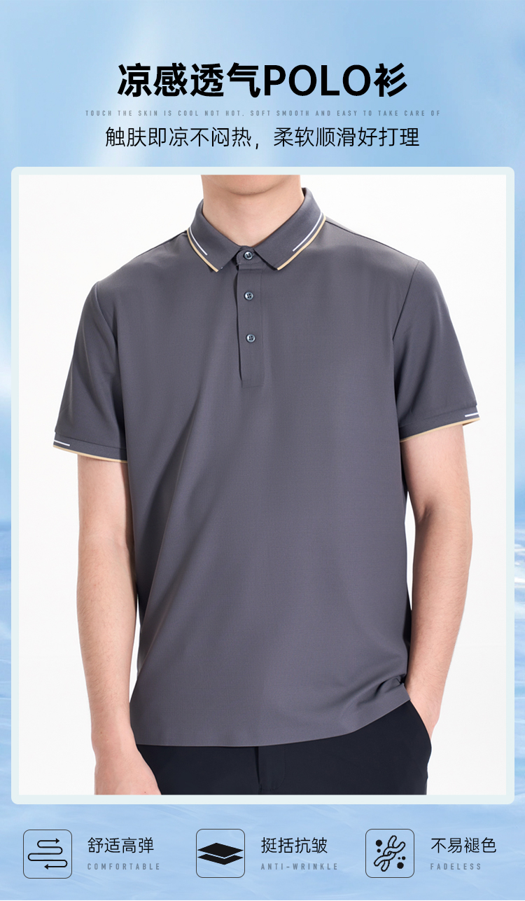 【实付满399送保温杯】【华夫格凉感POLO衫】冰丝高弹翻领短袖T恤 通勤休闲半袖POLO衫L410