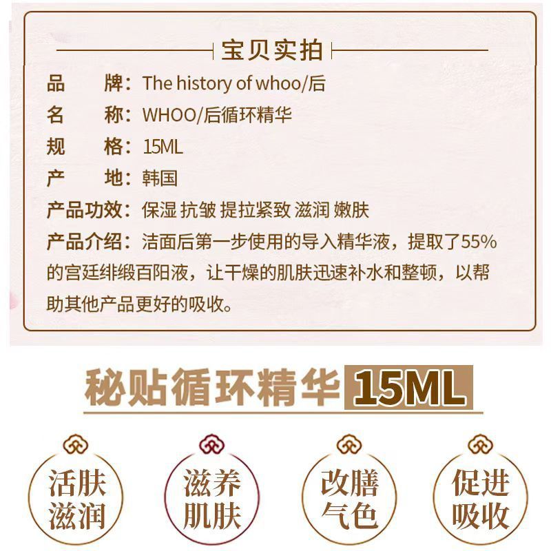 【爆款超低价预售 急单慎拍】whoo后秘贴循环导入水前精华肌底液密贴面部顺滑中样