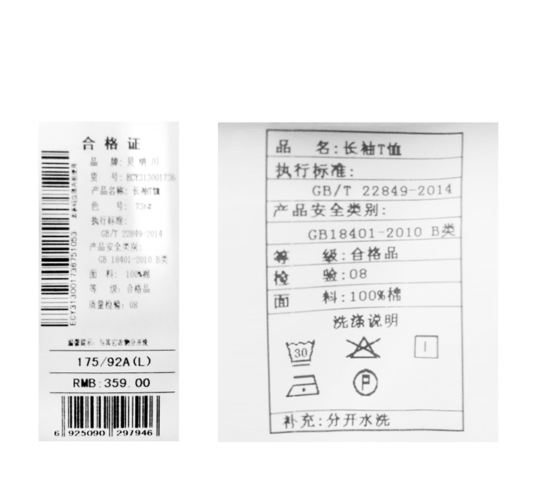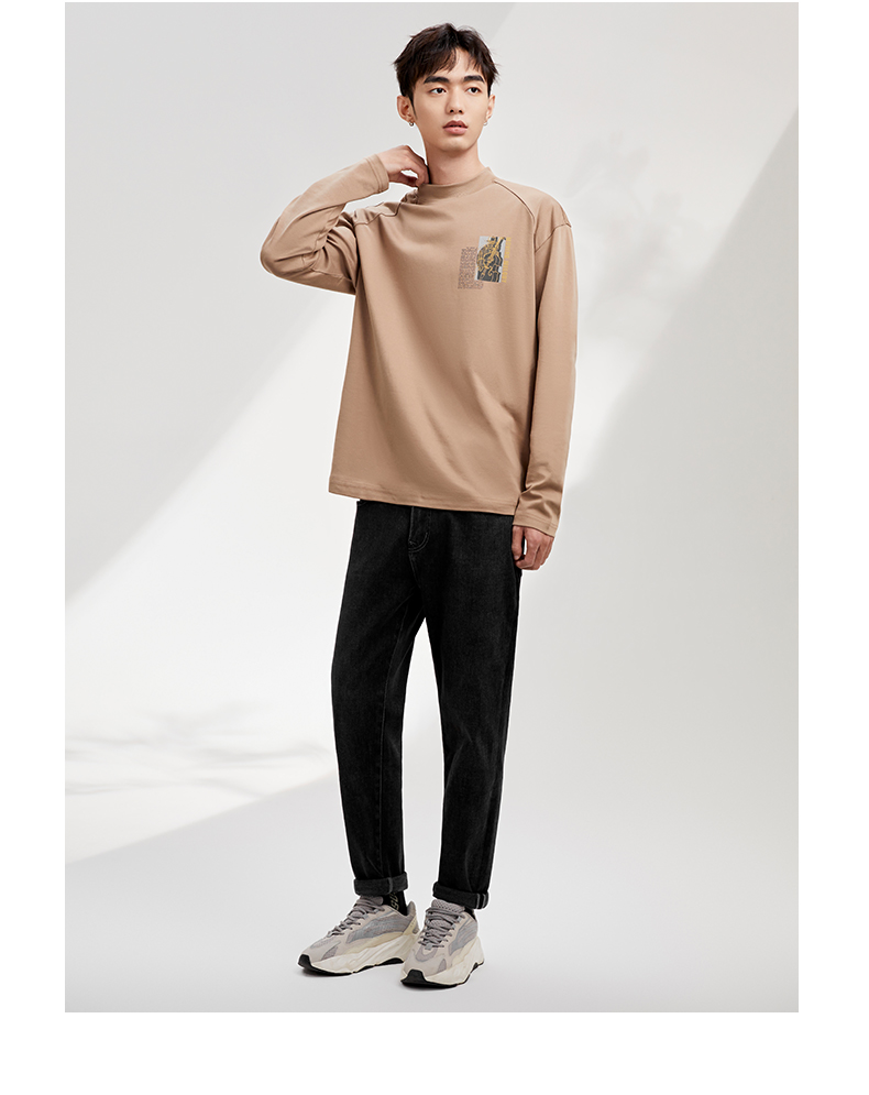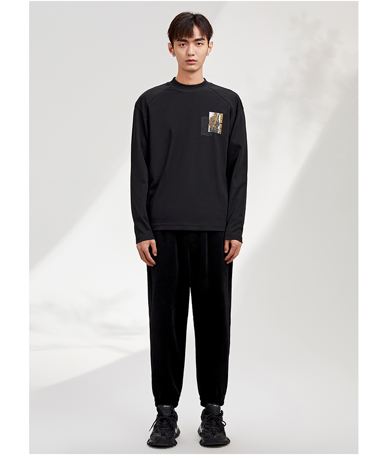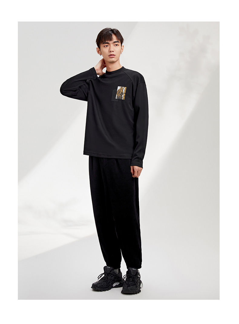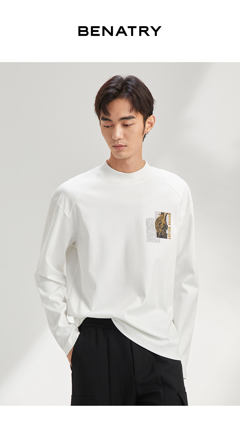 贝纳川纯棉百搭打底衫男士宽松潮牌内搭长袖T恤ECY313001
