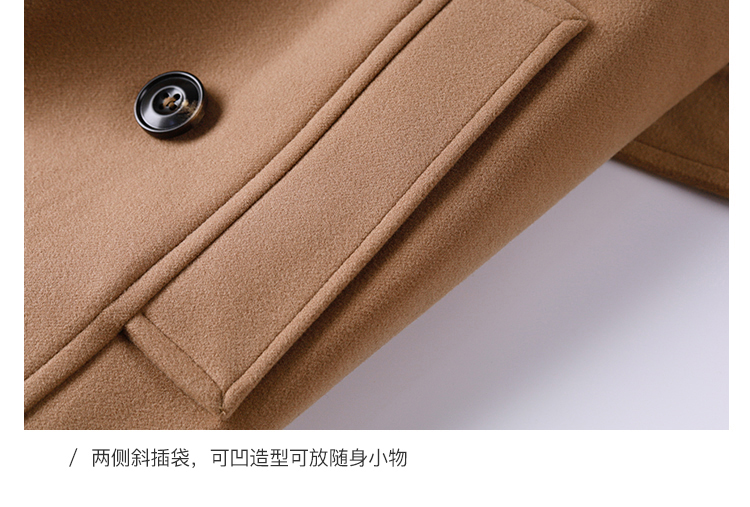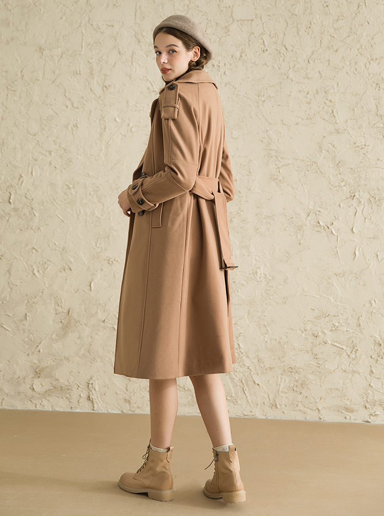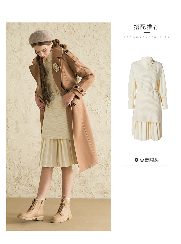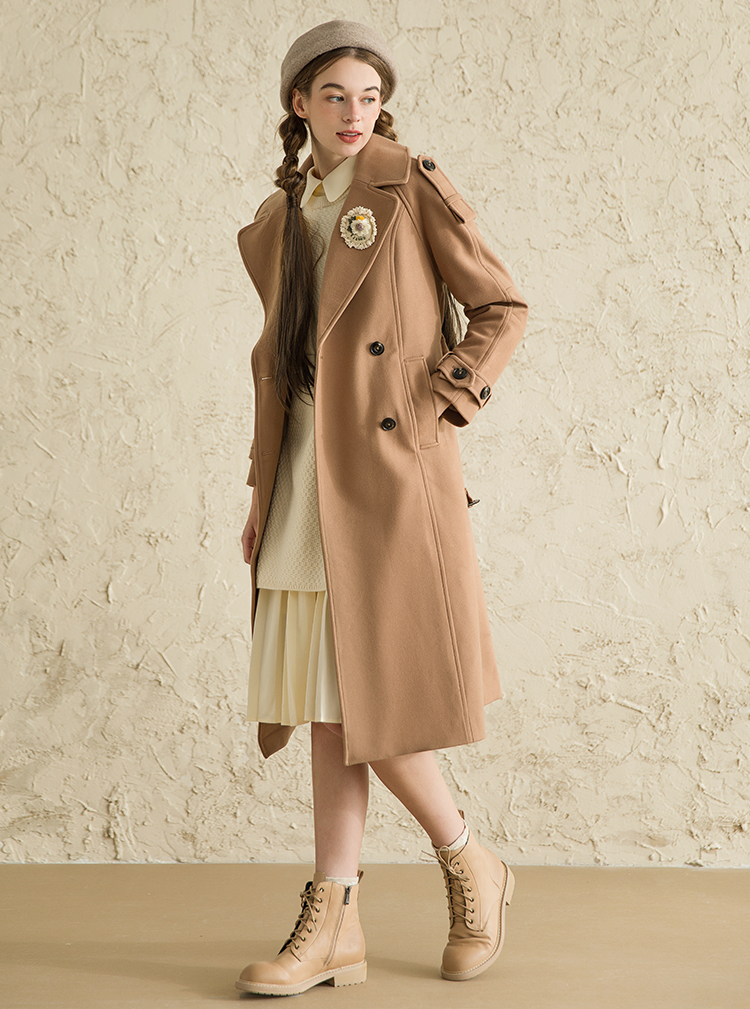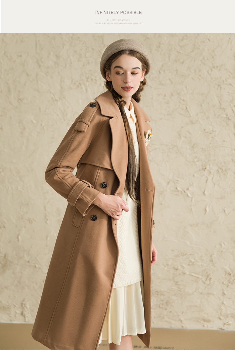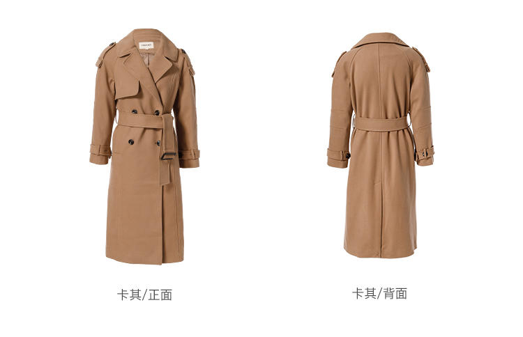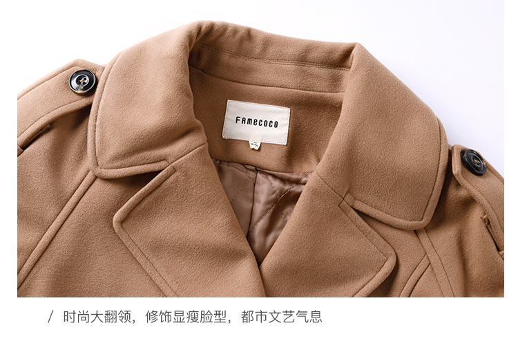 Famecoco范可儿大衣中长款收腰双排扣毛呢外套D178AC300