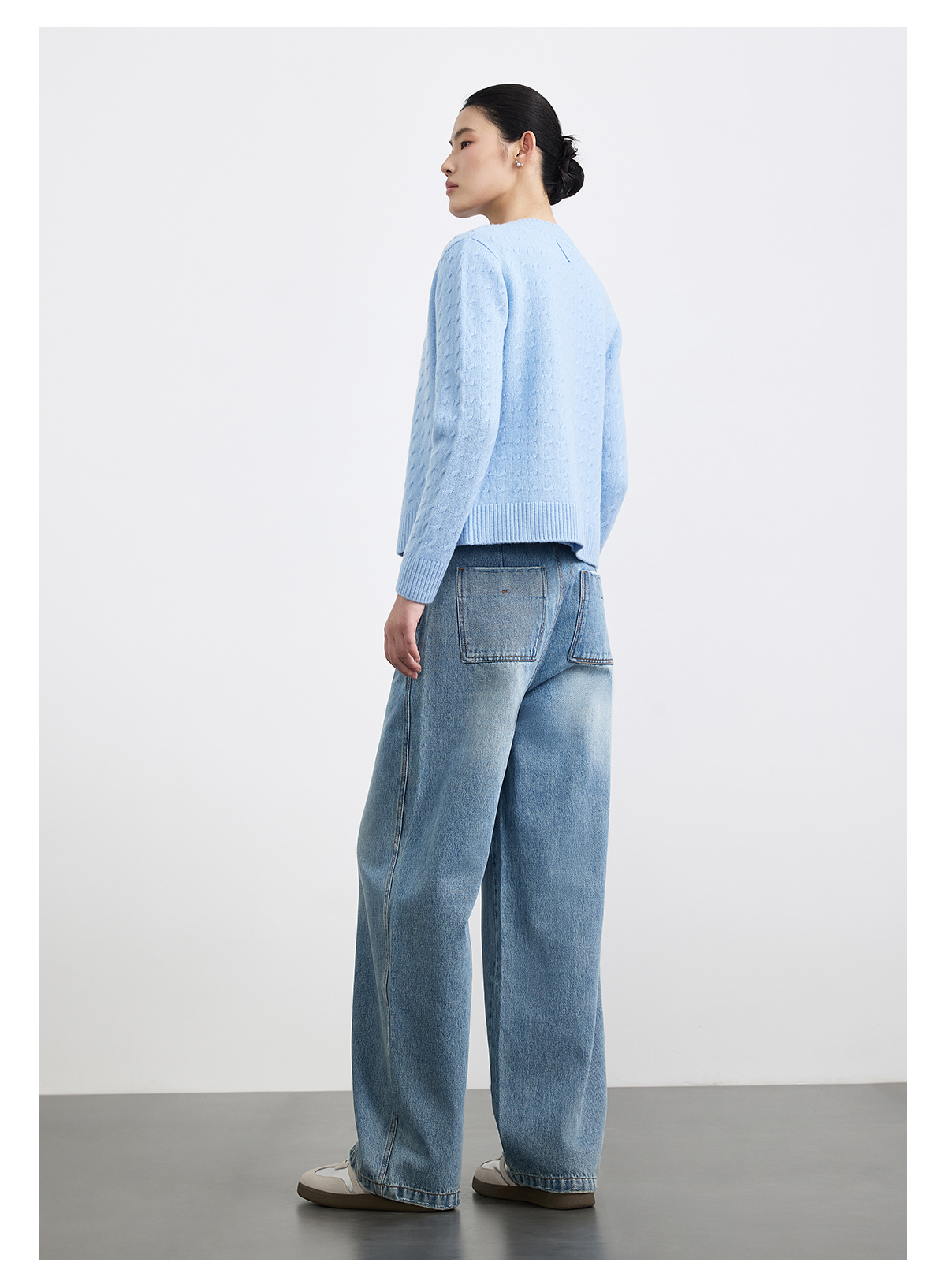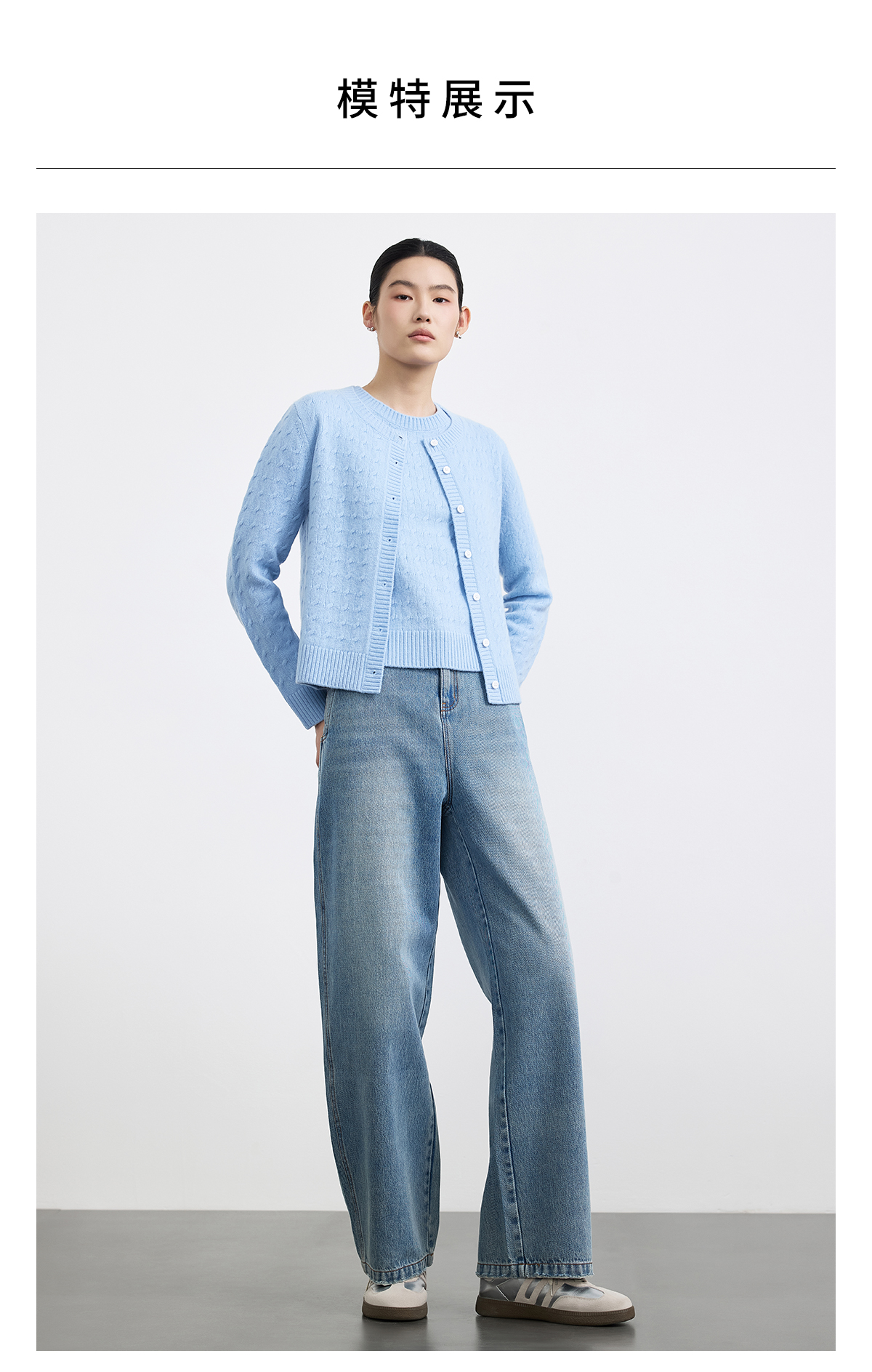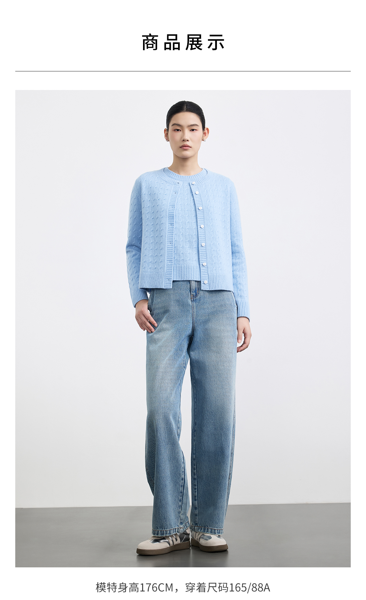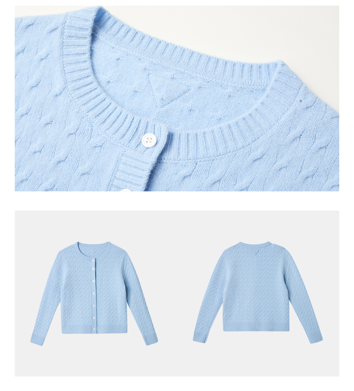PURE TOUCH 浅蓝色绞花针织开衫