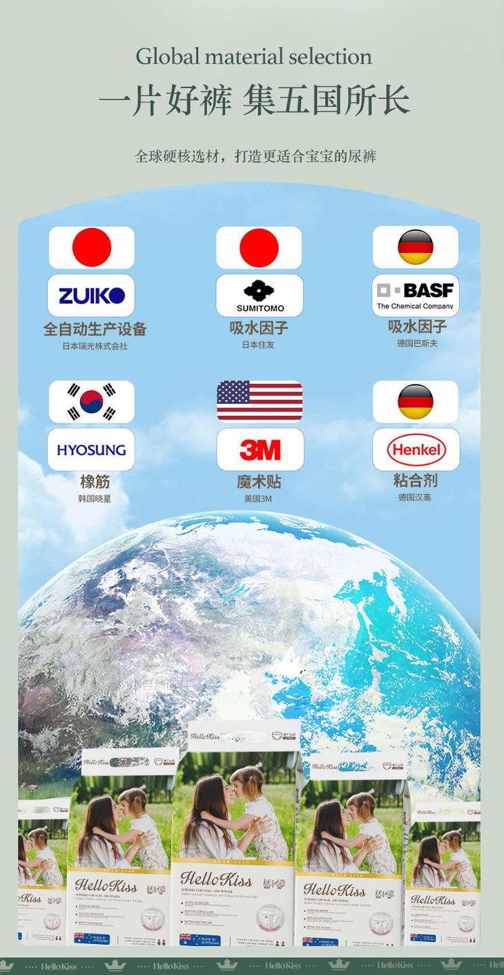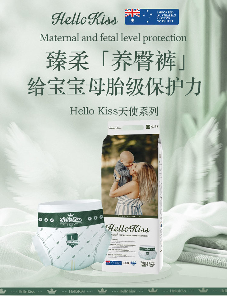 Hello Kiss含羊毛脂膏澳棉腰贴型纸尿裤/任意组合(购满358元参与:1元报名送358元乳铁蛋白)