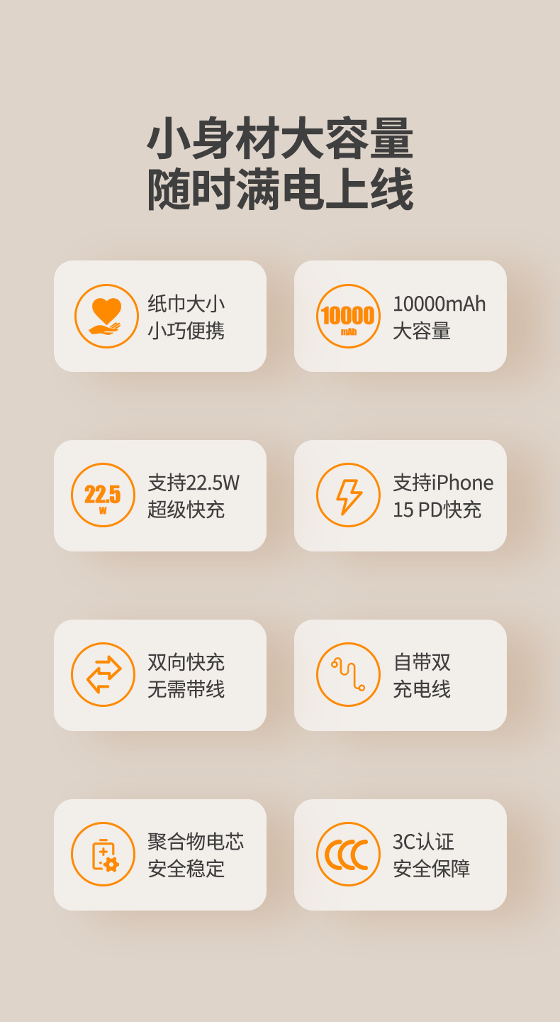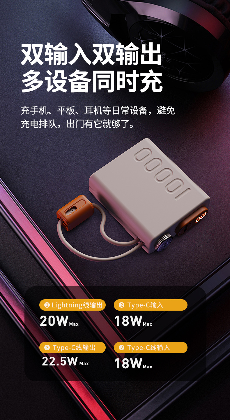 imu幻响S8自带线移动电源10000mAh迷你小巧便携快充充电宝22.5W
