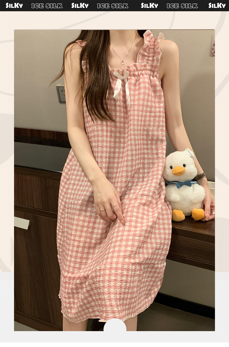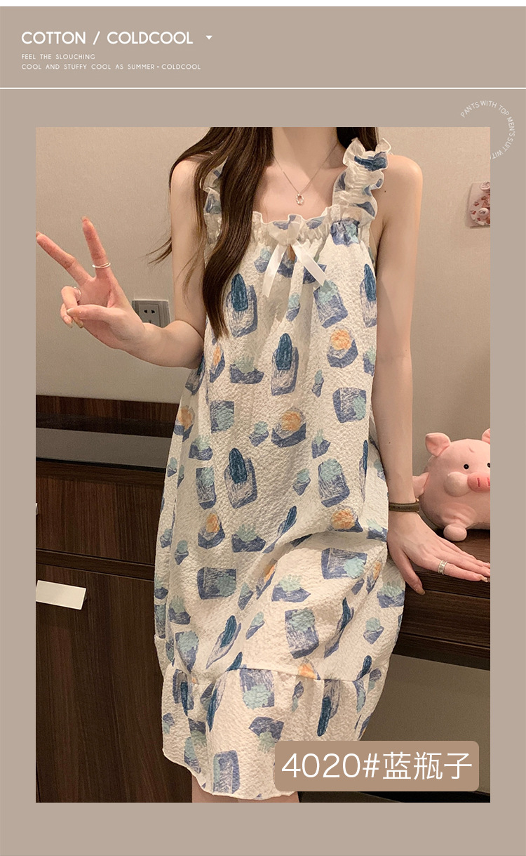 【居家就该想你所想】夏季带胸垫可拆卸吊带睡裙薄款甜美仙女风梭织泡泡棉可外穿家居服。ry