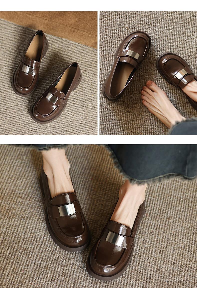 【手工女鞋复古港风乐福鞋】 真皮气质2025新款圆头单鞋女3CM软底-CC
