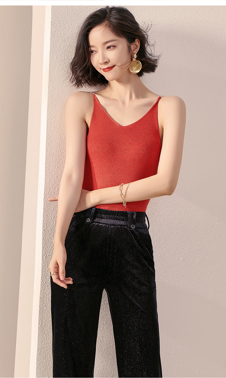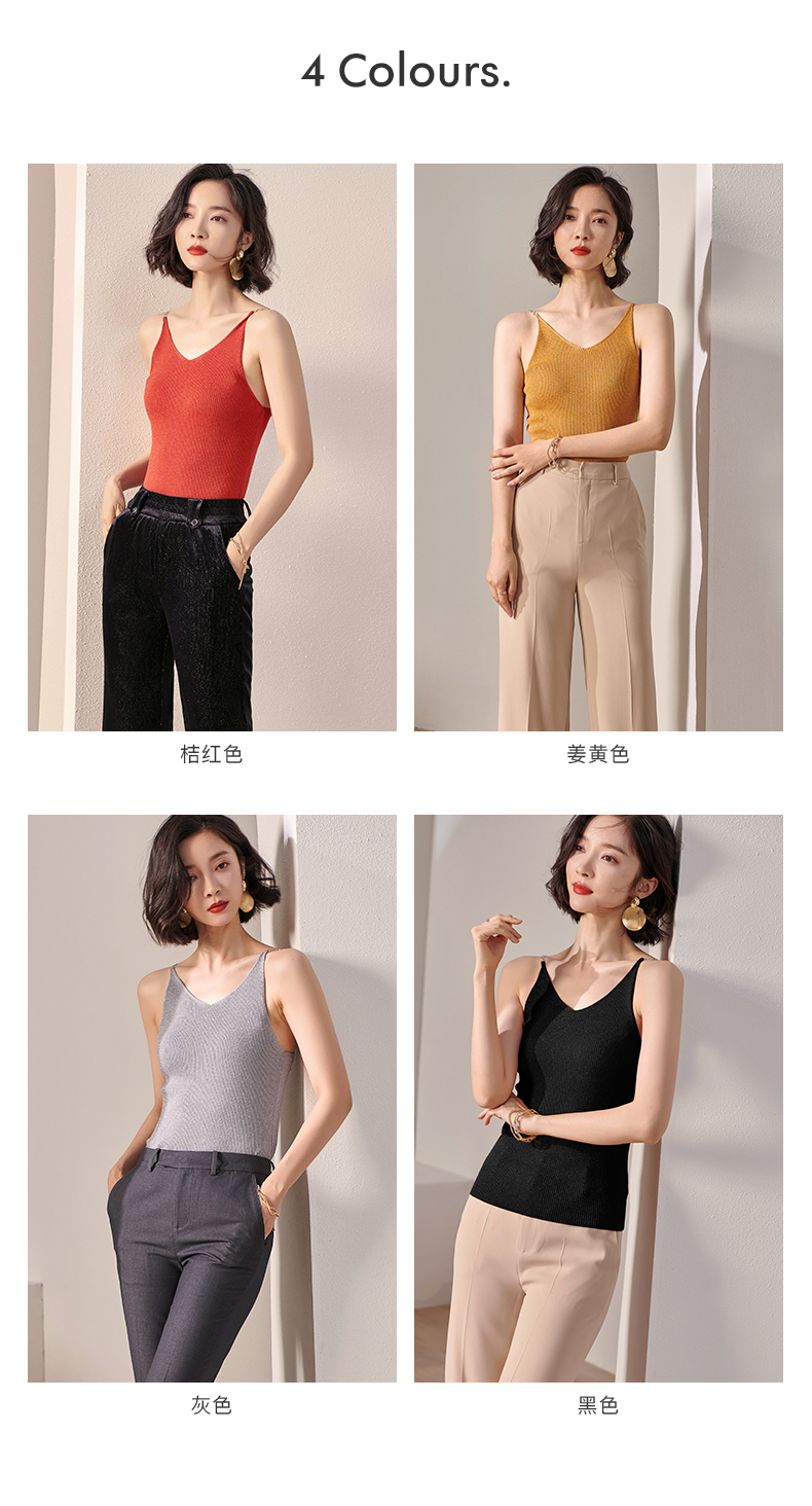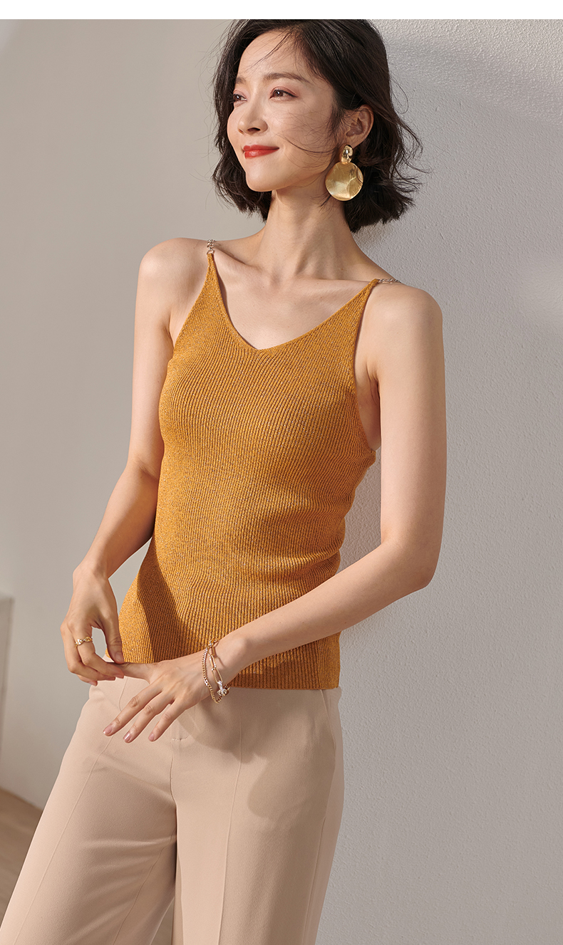 剩S 米思阳2025春季新款时尚亮片吊带衫修身内搭V领针织背心女0180