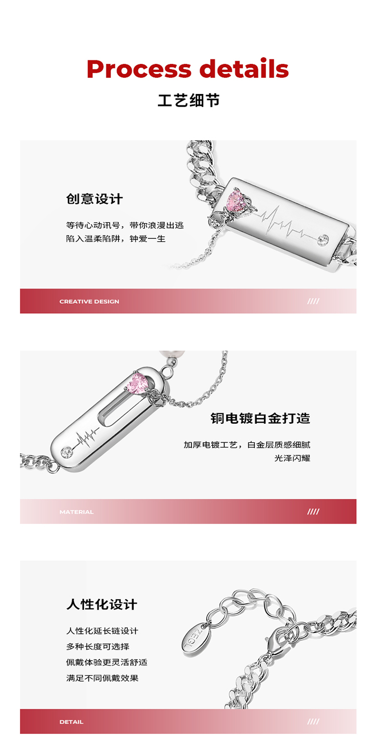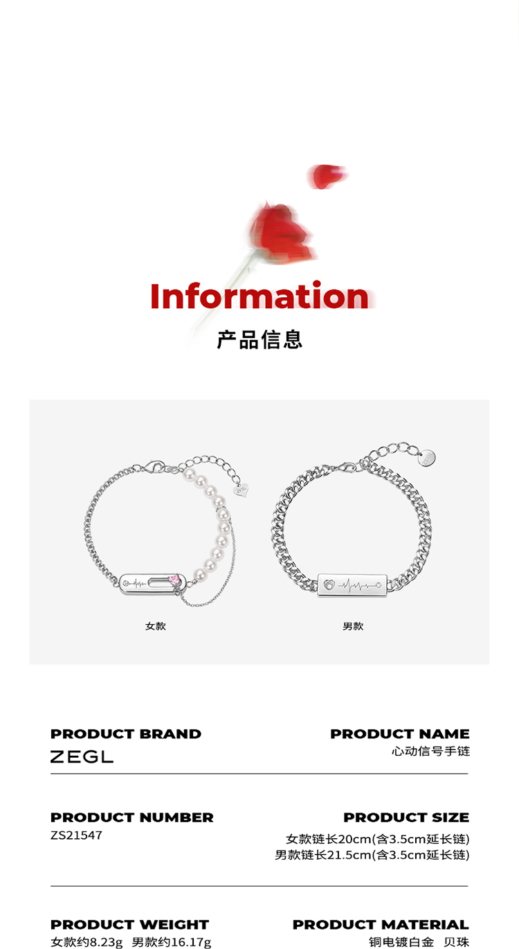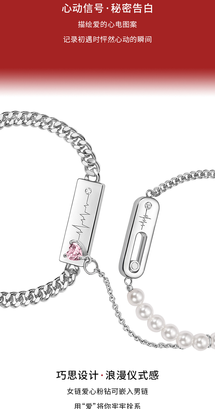 ZEGL设计师心动情侣款手链一对设计感小众手饰情人节礼物送男女友