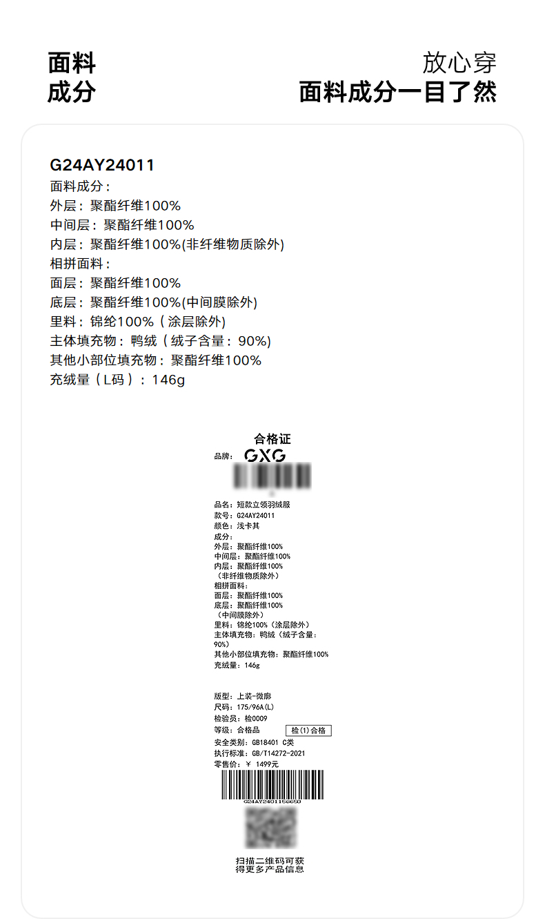 GXG男装 短款羽绒服肌理面包服保暖外套 24冬季热卖