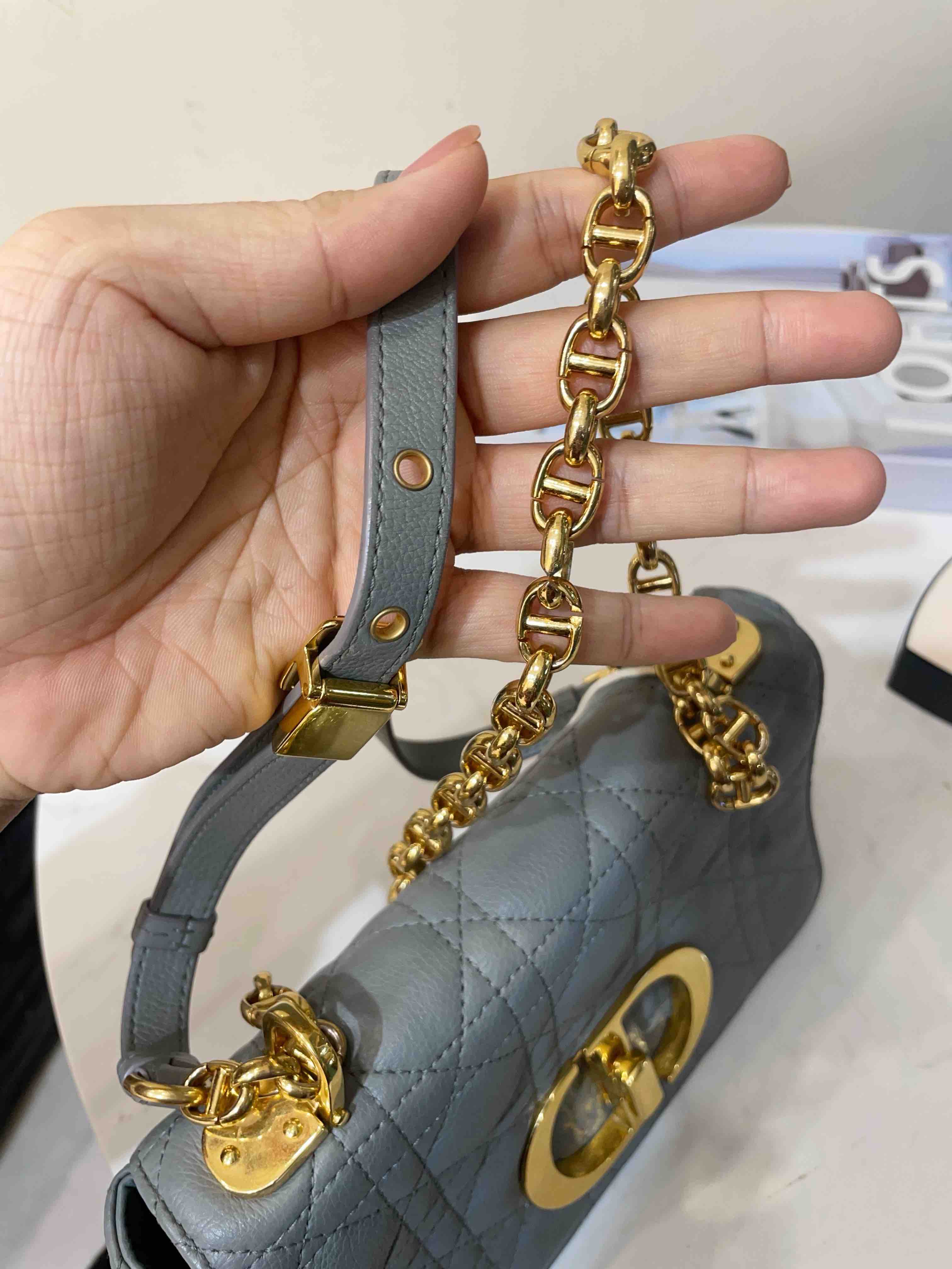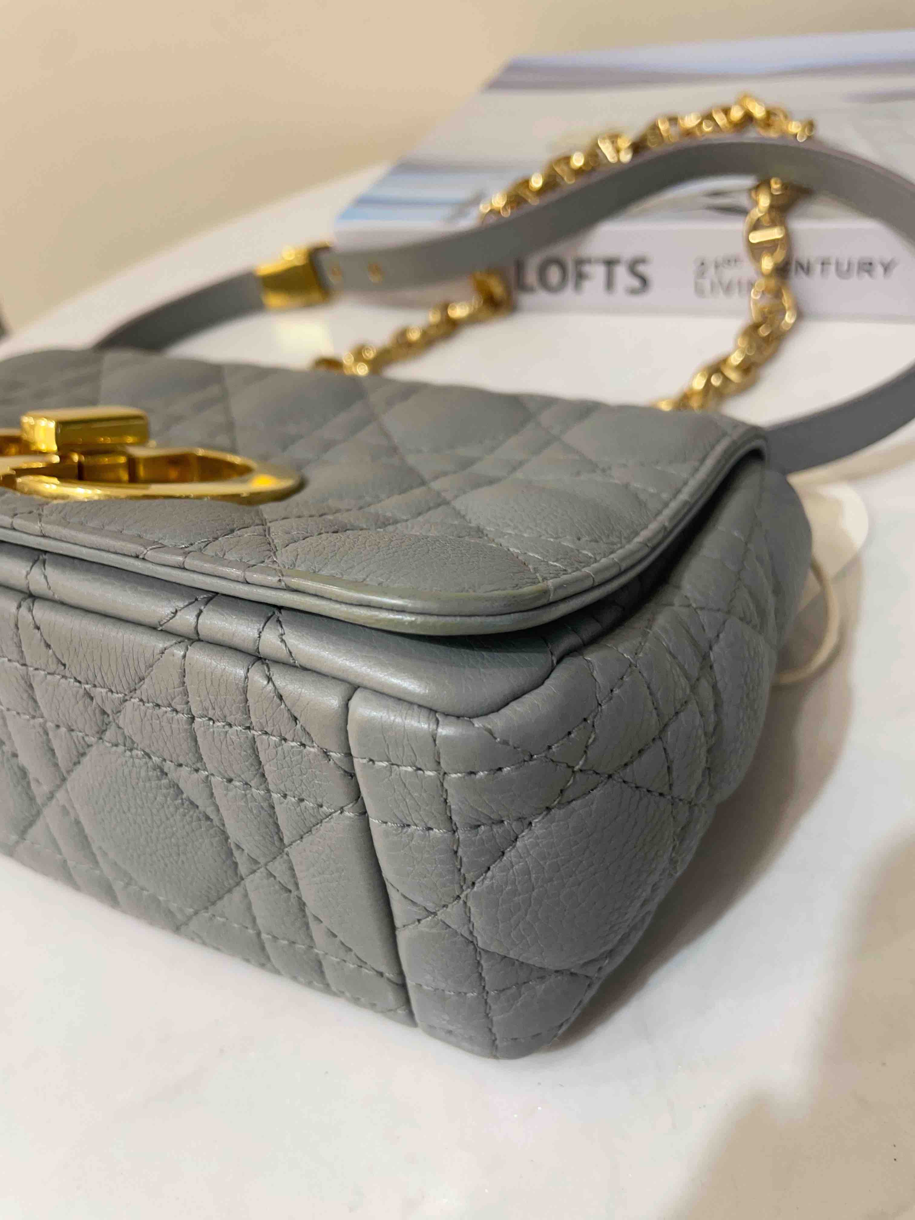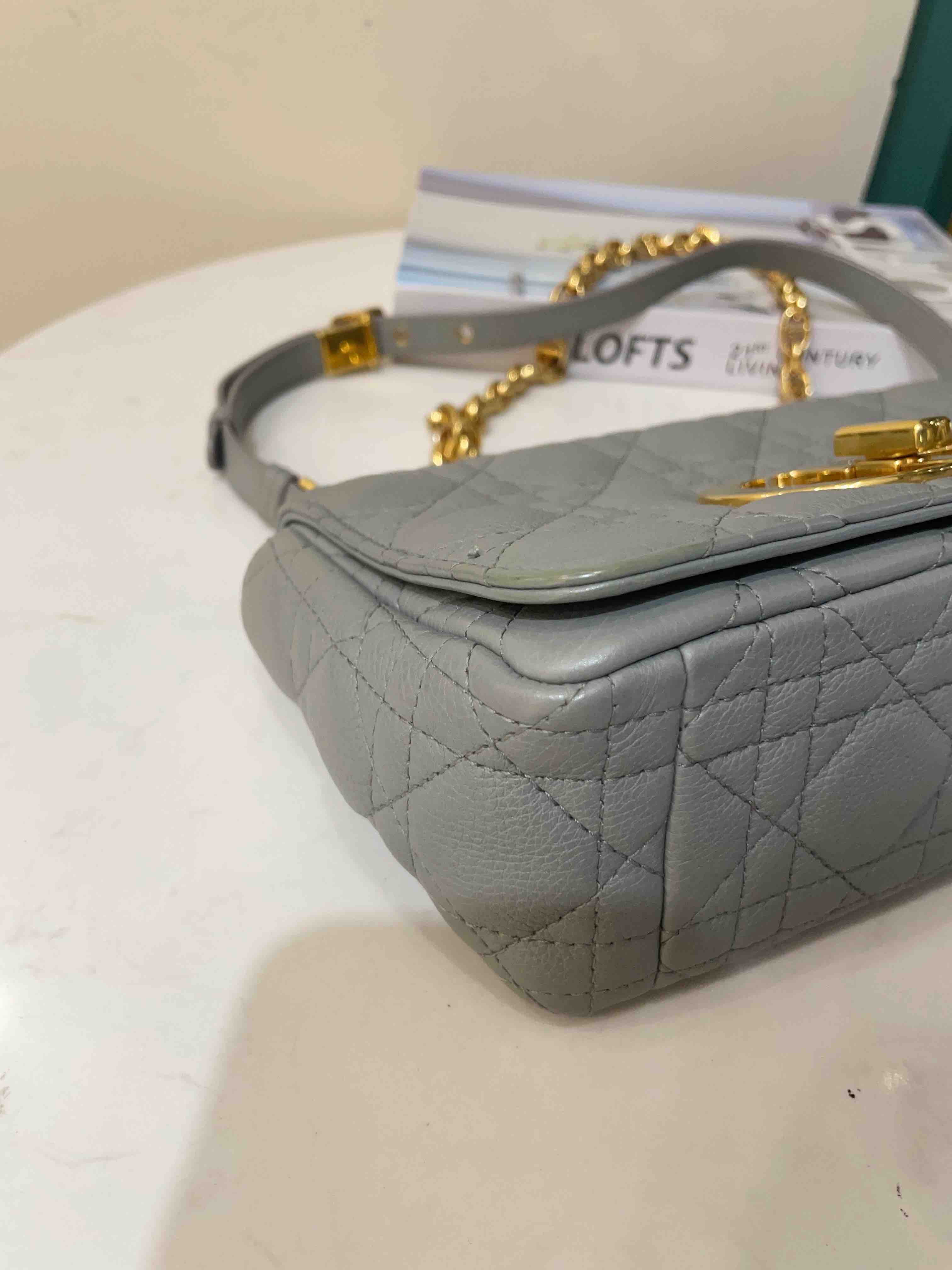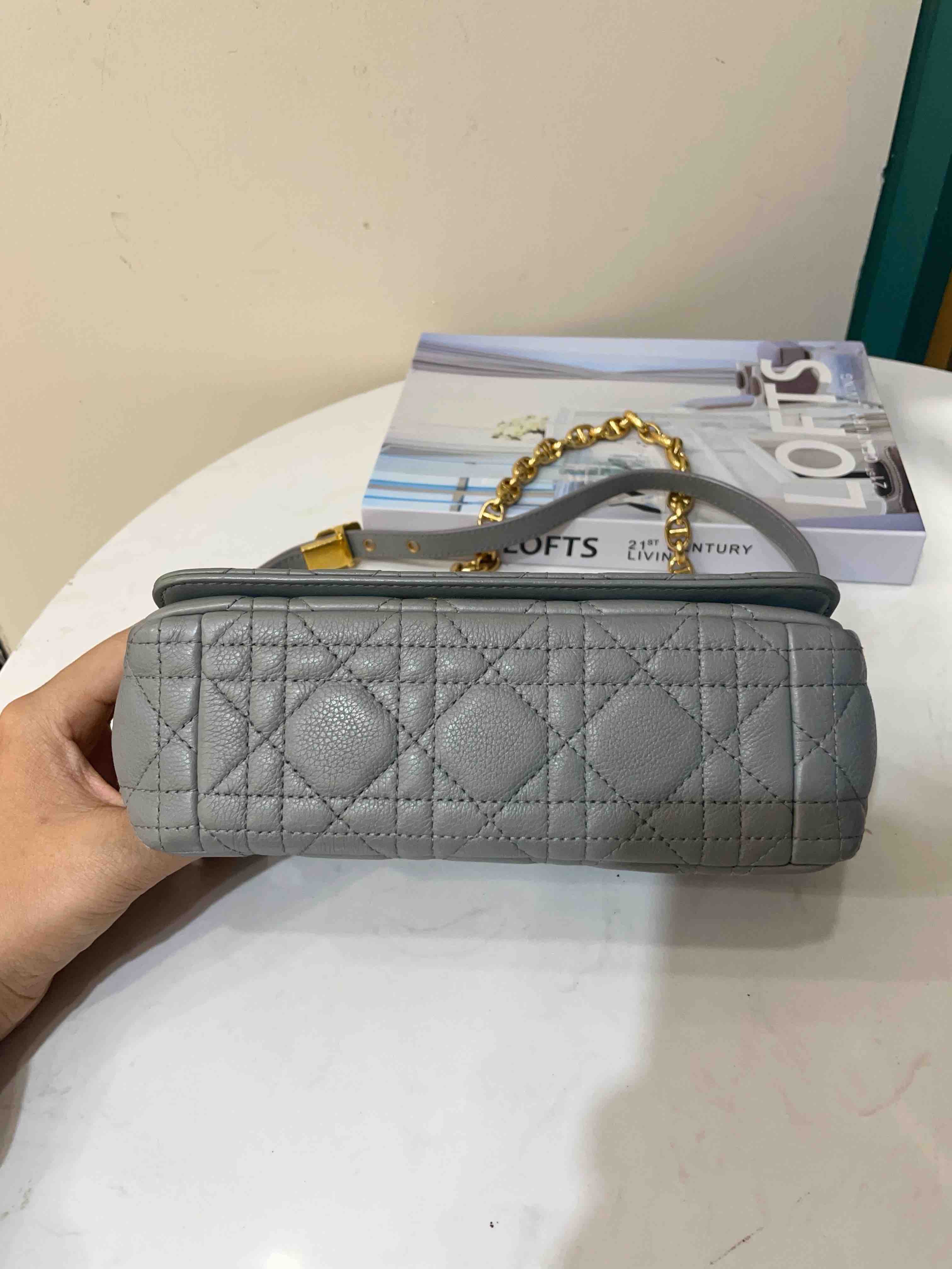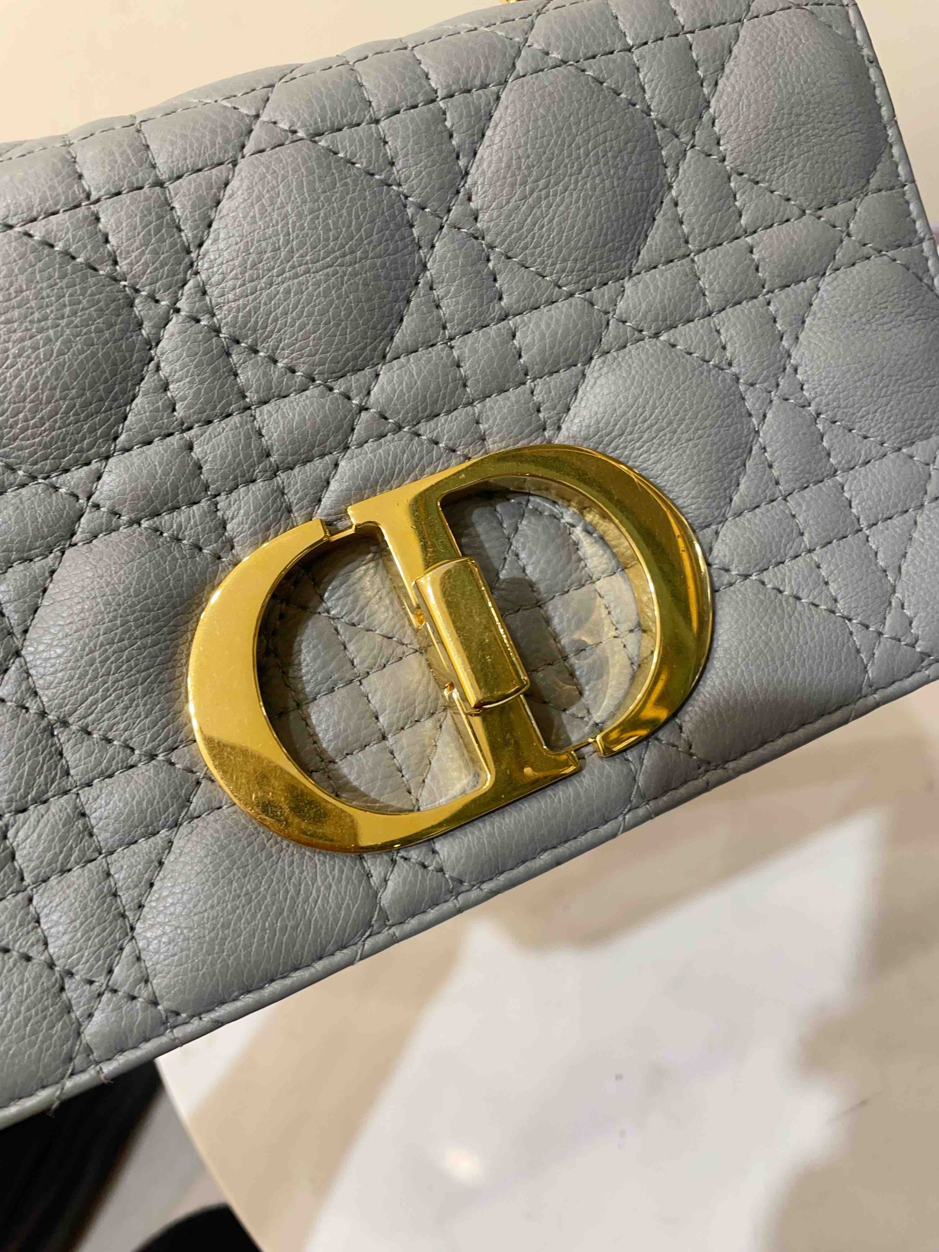 【商品详情】正品二手 Dior CARO 灰蓝色 菱格 小号 牛皮 斜挎包🍨95新 21*12。金属正常使用感。优雅和温柔的气质🍦
