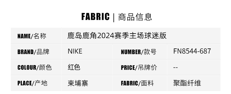 SFS正品 耐克Nike 2024J联赛鹿岛鹿角主场球迷版球衣 FN8544-687