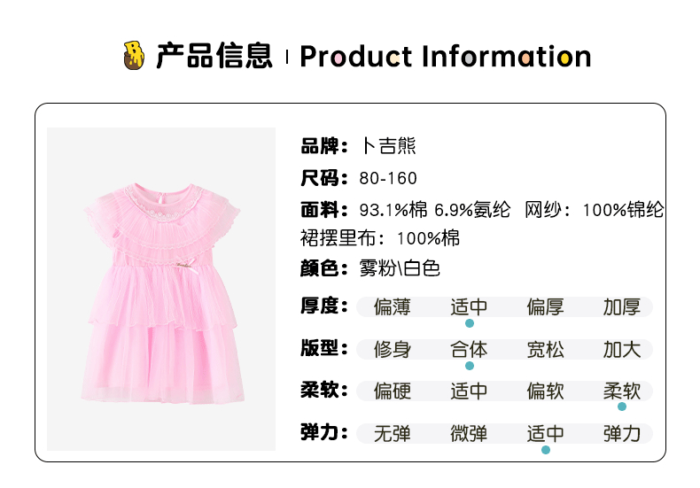 BOOGIEBEAR卜吉熊童装夏季 休闲连衣裙80-160 828228111