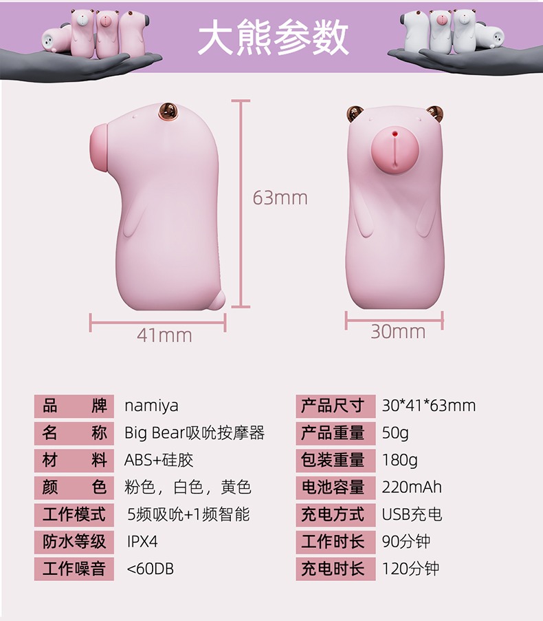 温柔的大熊君——namiya 可爱便携,5中吮吸变频迷你小跳蛋(日本品牌)