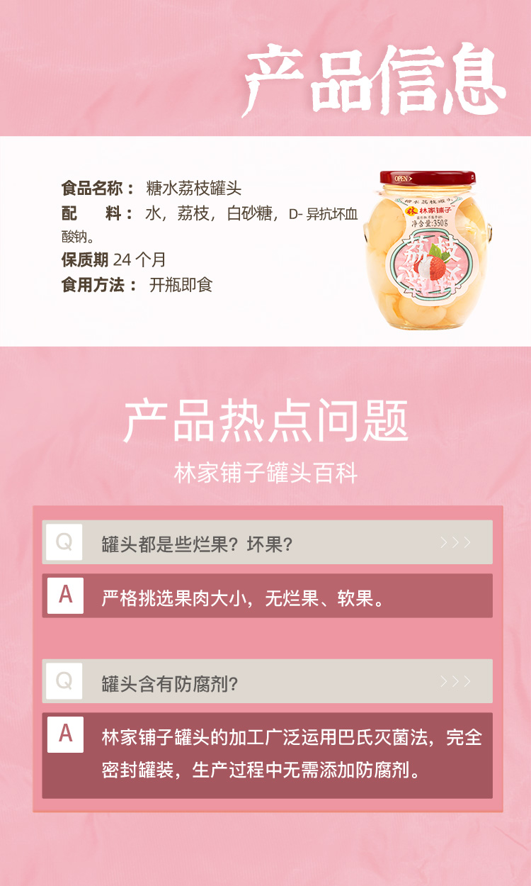 糖水荔枝罐头350g*5罐(加赠5个密封调料盖)