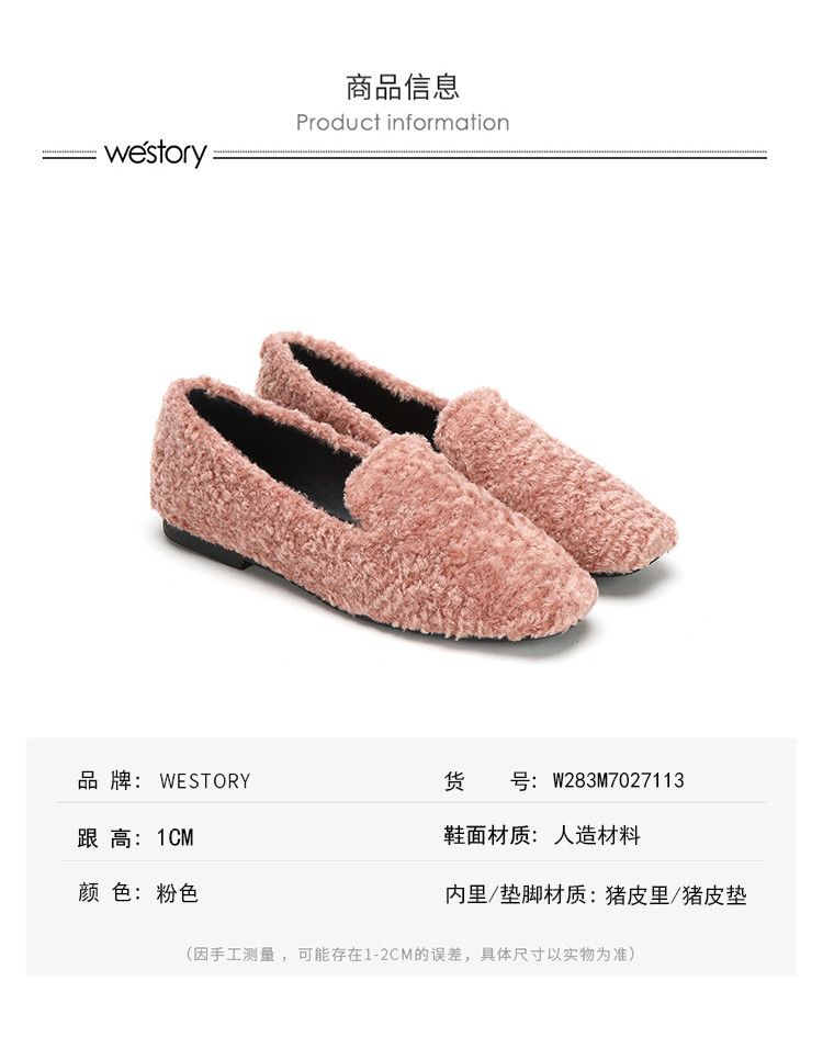 westory商场专柜同款平底一脚蹬休闲鞋毛毛鞋百搭圆头乐福鞋单鞋女W283M70271