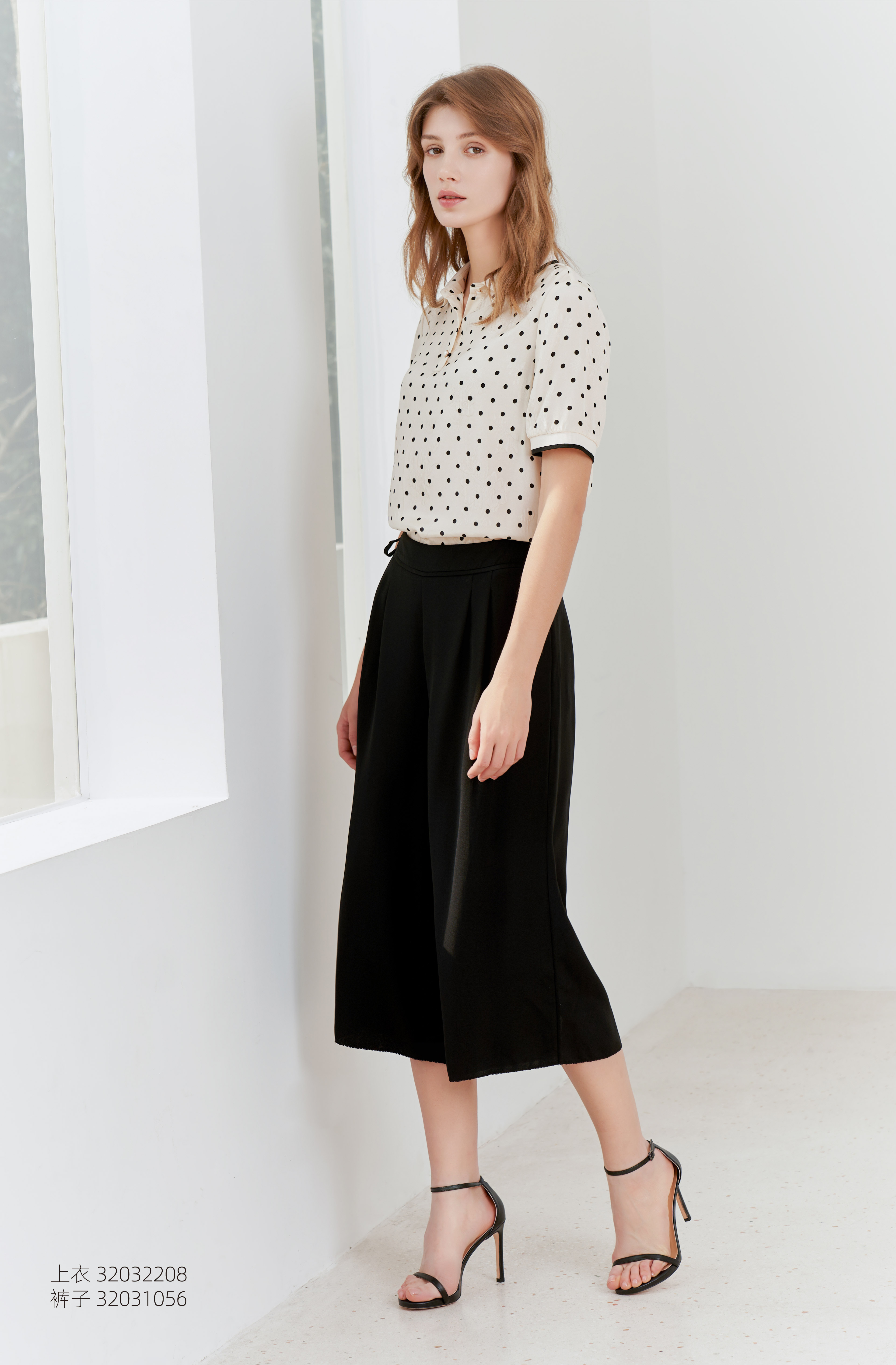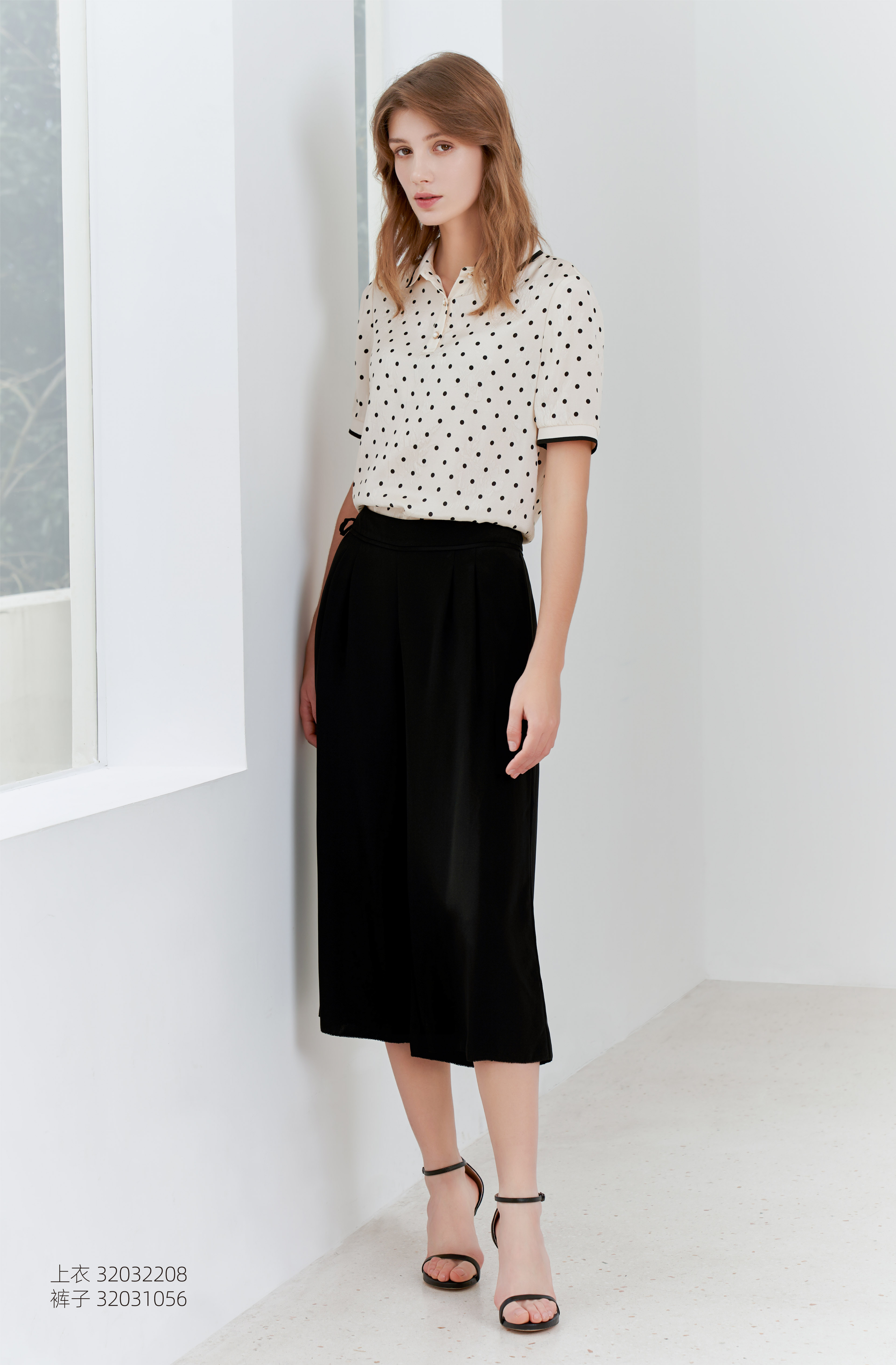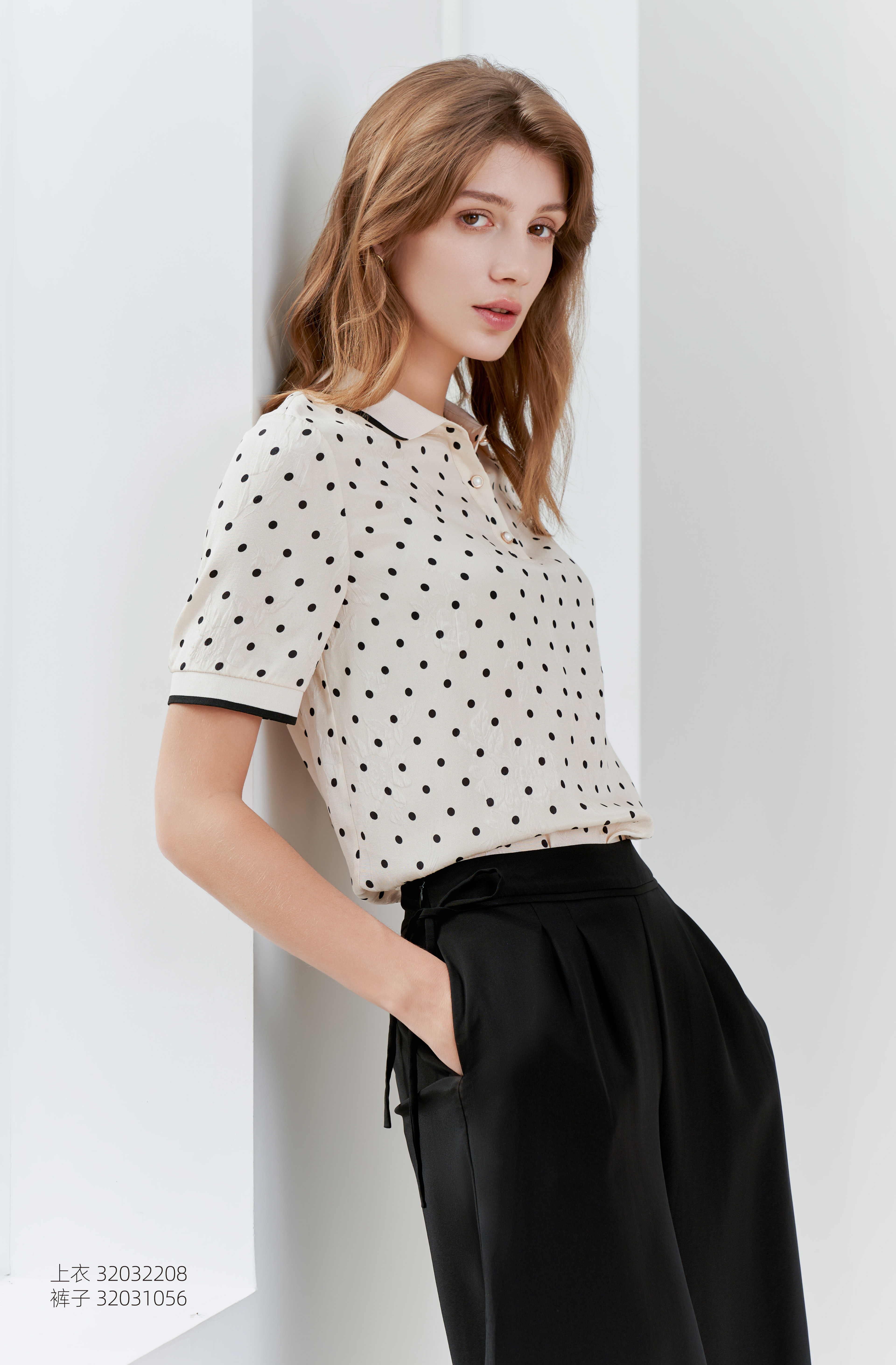 【桑蚕丝衬衫领上衣】23年夏季新款女士白底黑点真丝上衣超薄通勤T恤