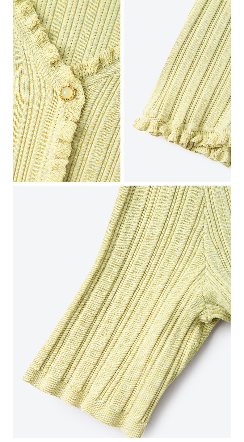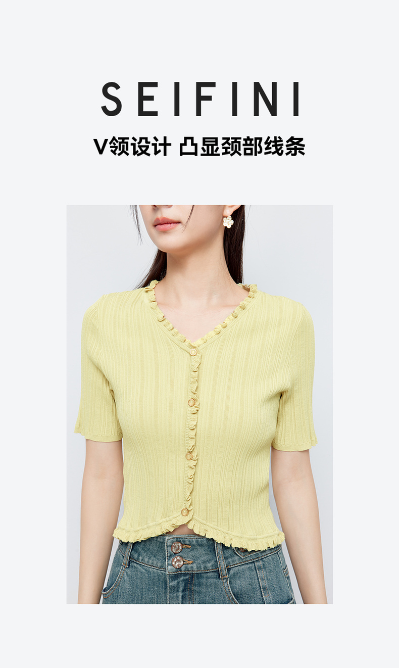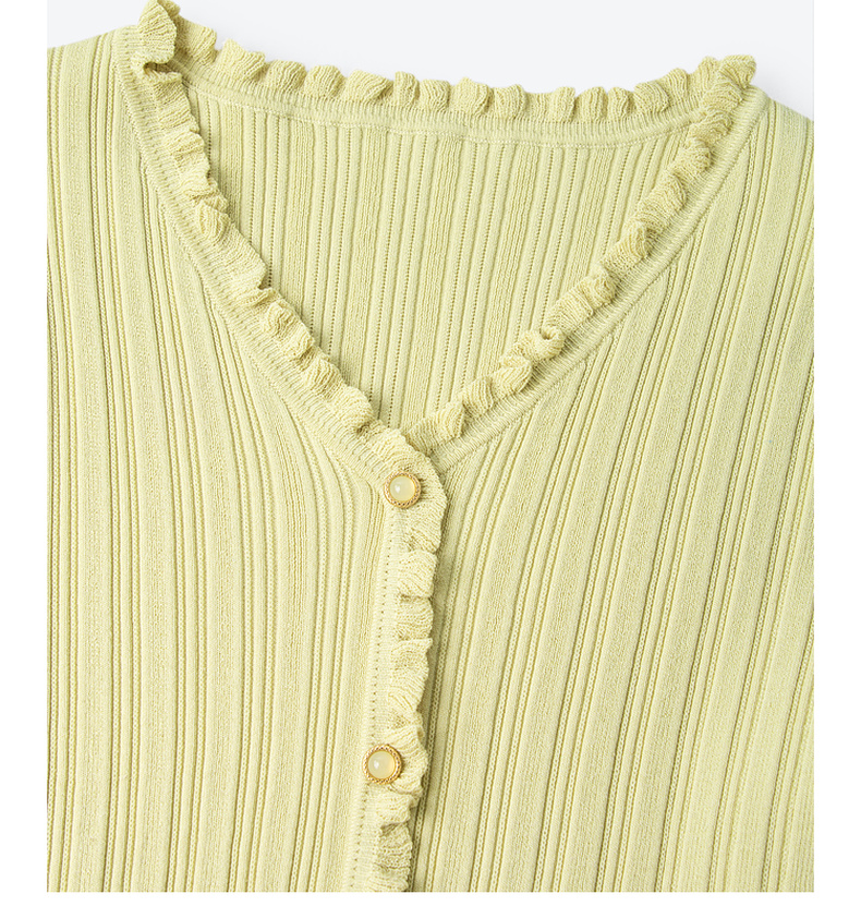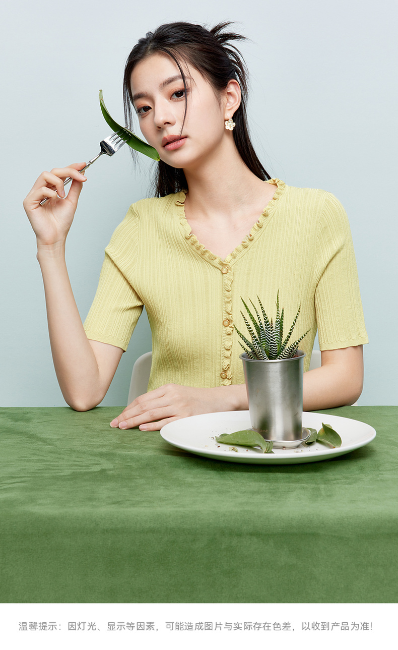 【积分换购不退货】【特惠不退货】诗凡黎绿色v领针织开衫2024夏新款显瘦上衣3F4230951