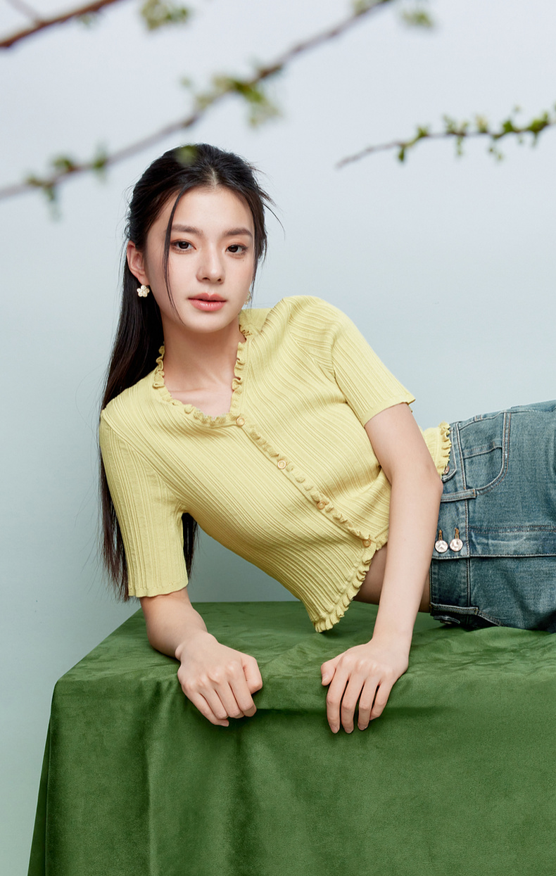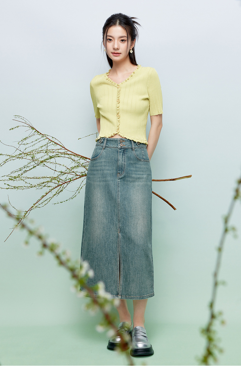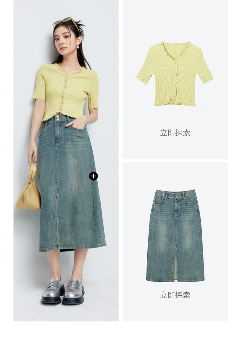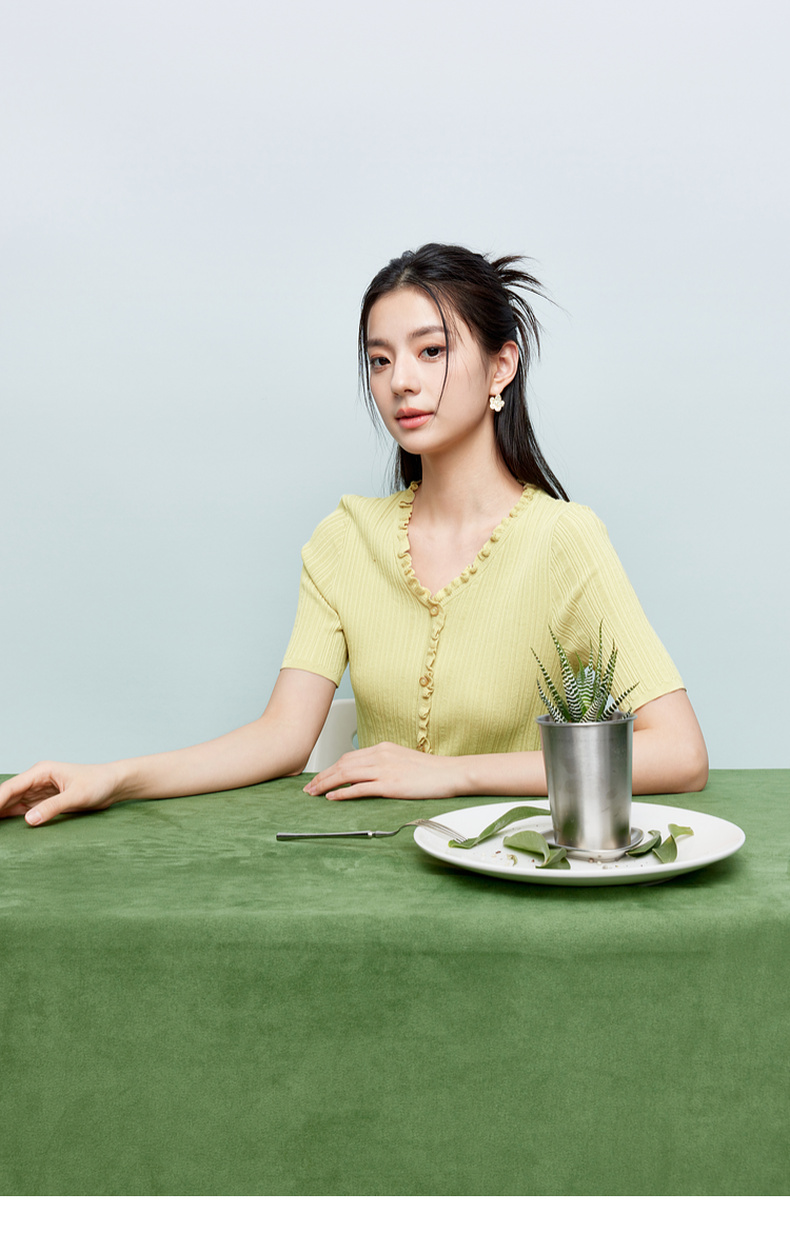 【积分换购不退货】【特惠不退货】诗凡黎绿色v领针织开衫2024夏新款显瘦上衣3F4230951