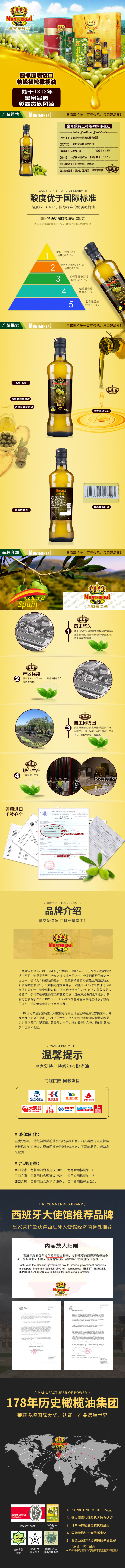 皇家蒙特垒特级初榨橄榄油 500ml/瓶 12瓶/箱 保质期:2026.11