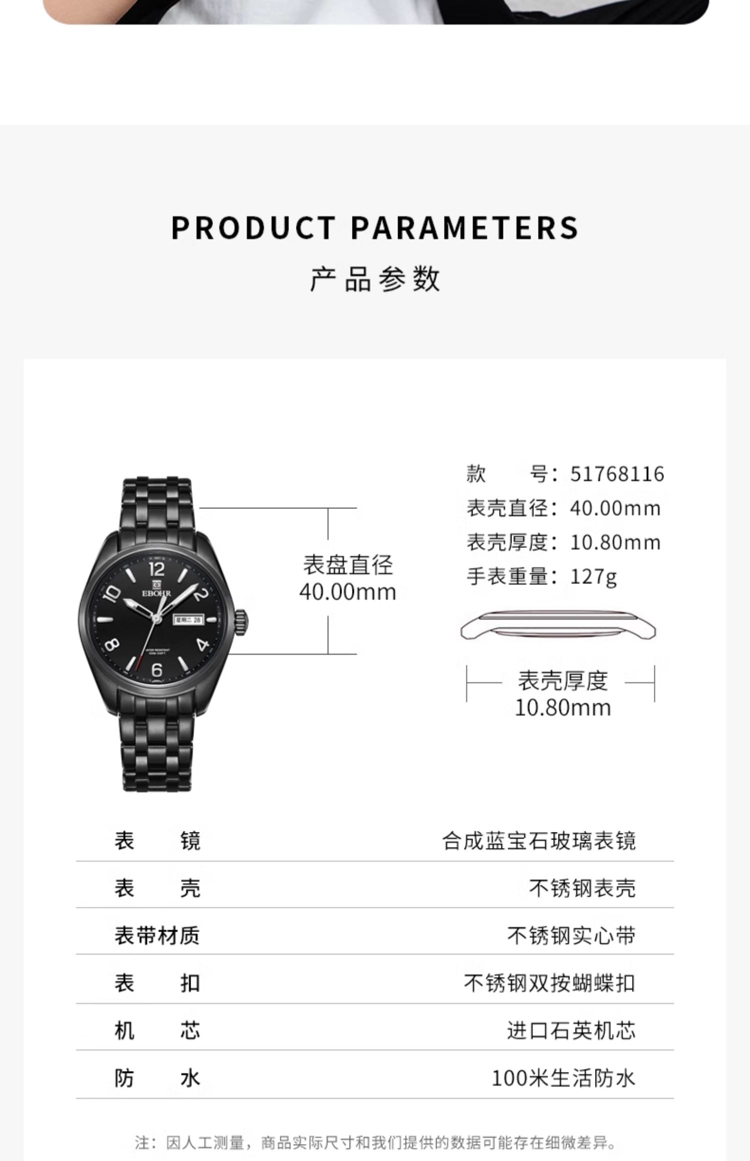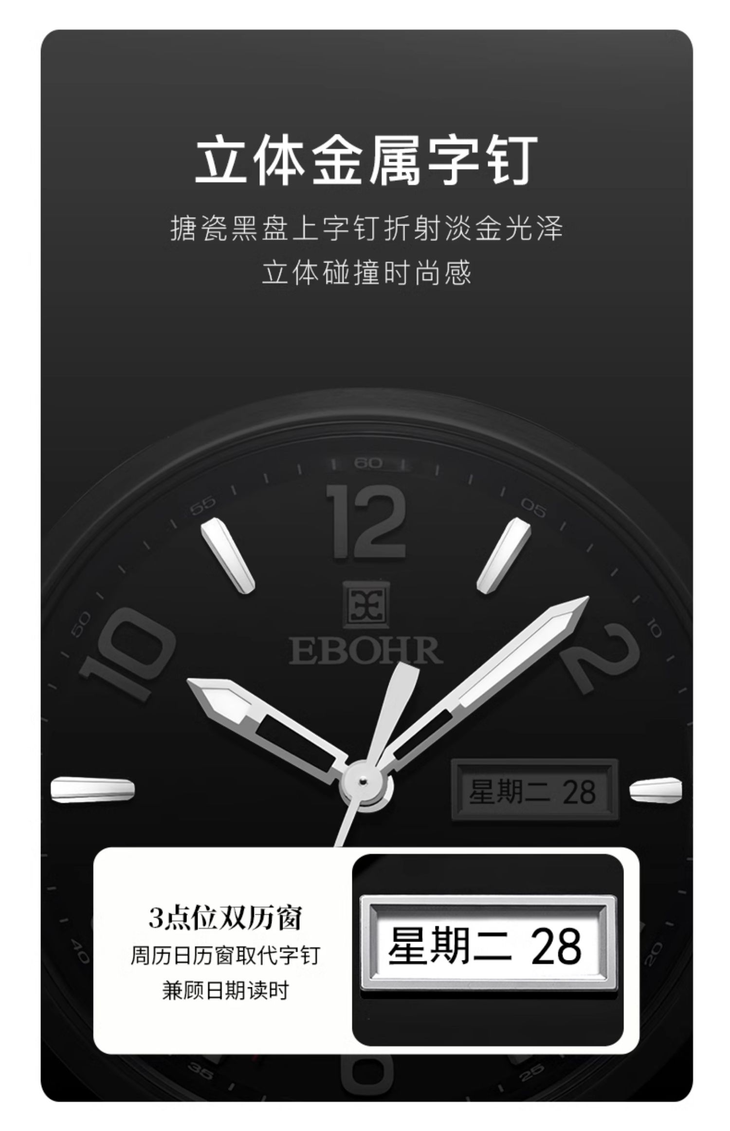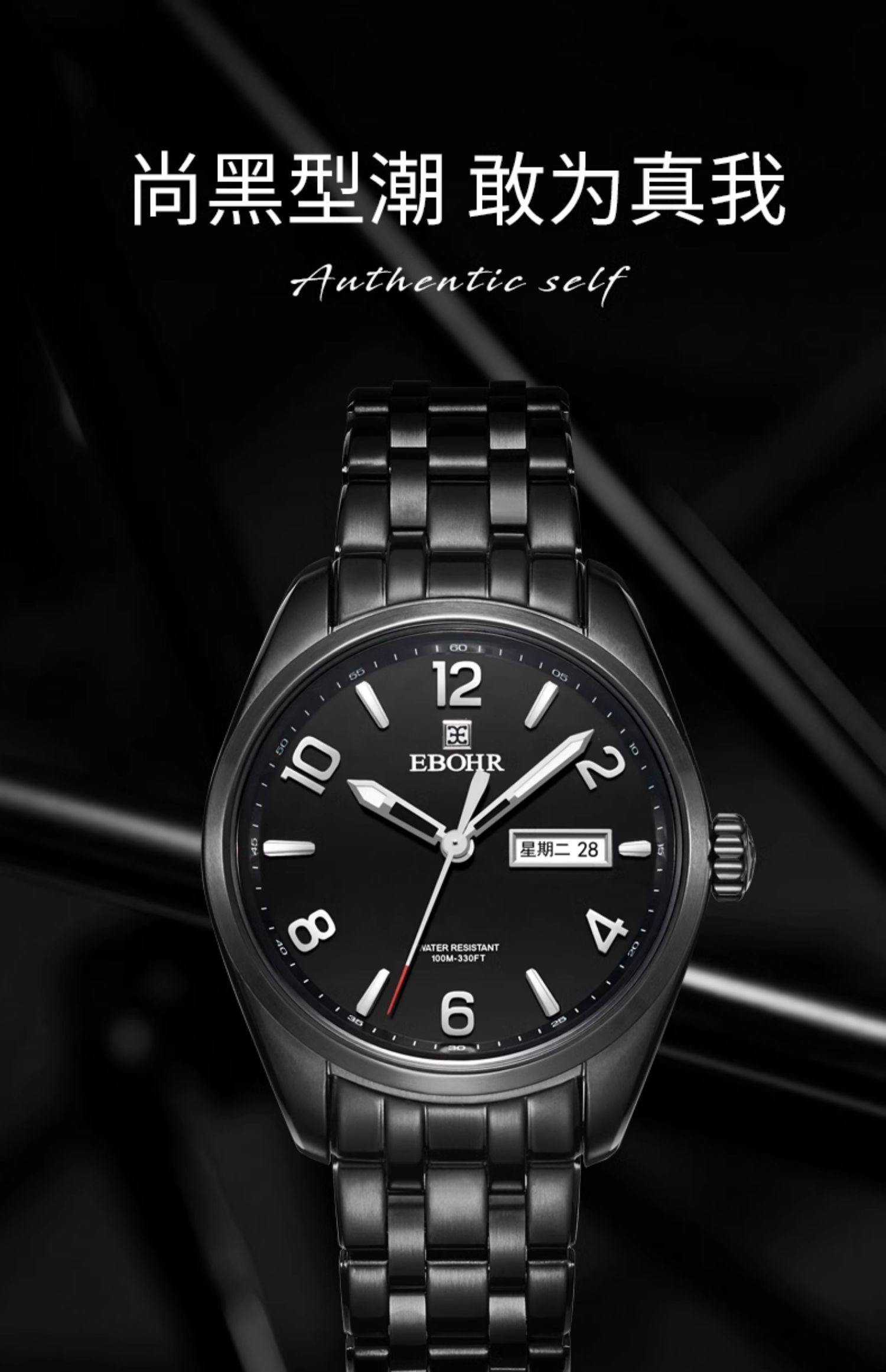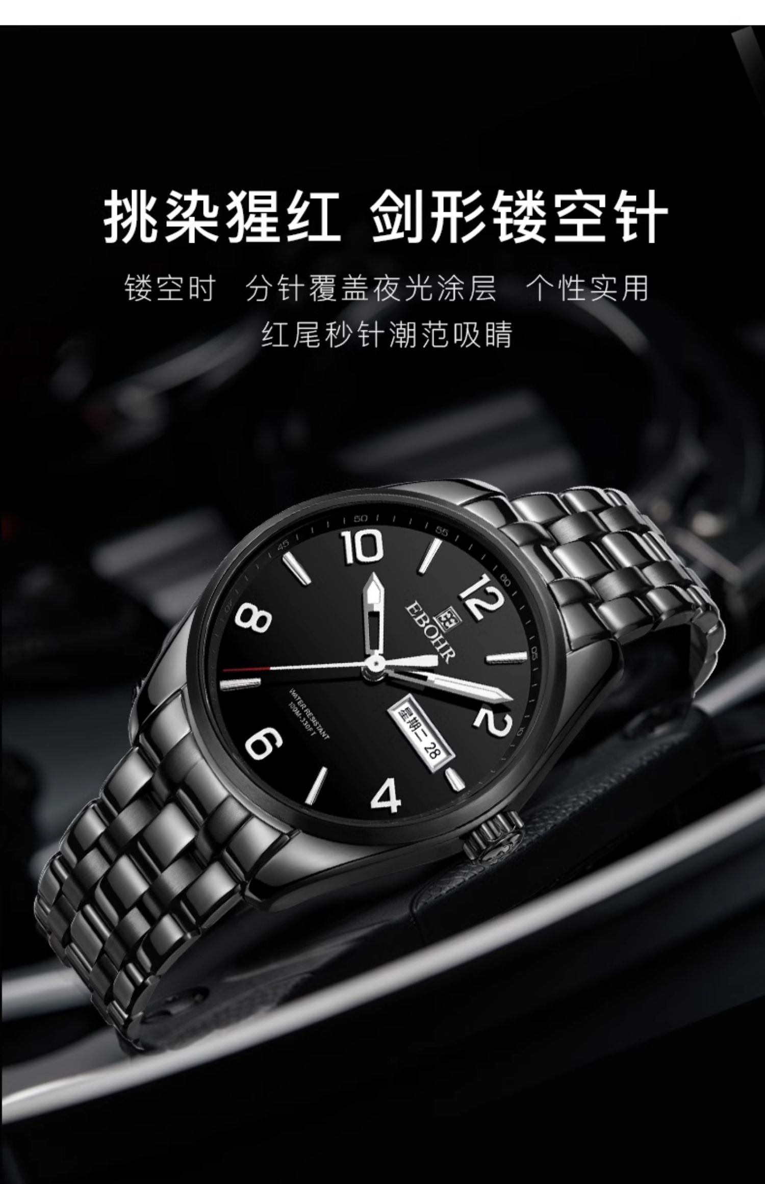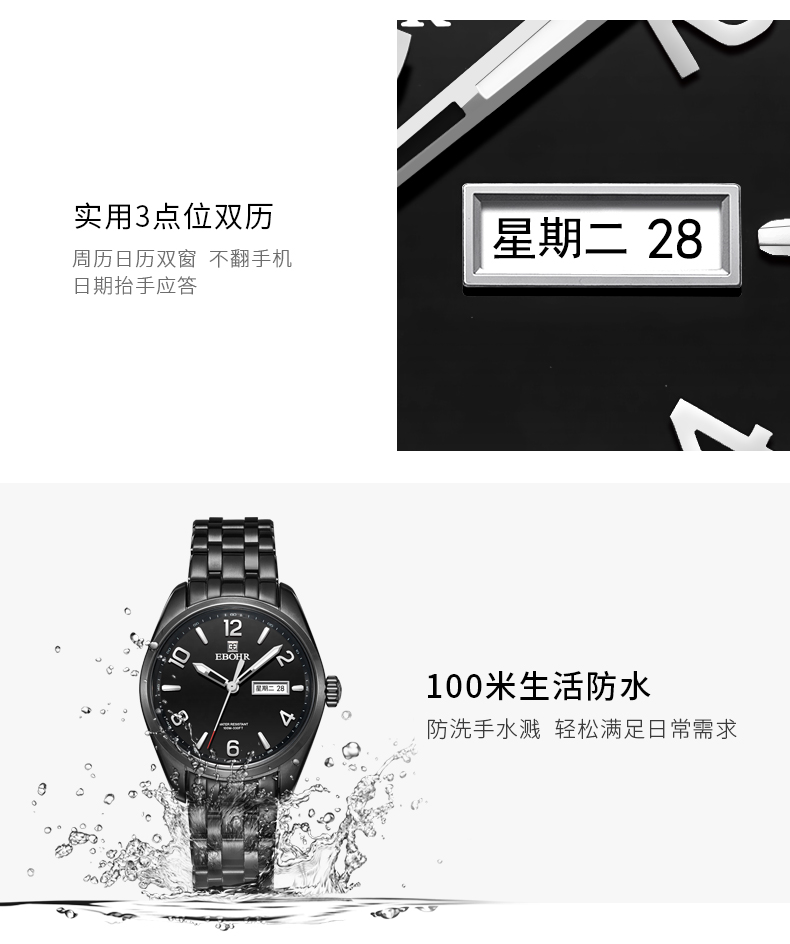 依波表EBOHR手表休闲简约腕表百搭日历石英手表男款防水手表3600