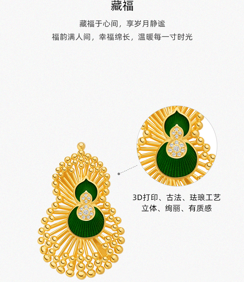 「美好金-藏福」s925银葫芦胸针 精致时尚高级感轻奢别针