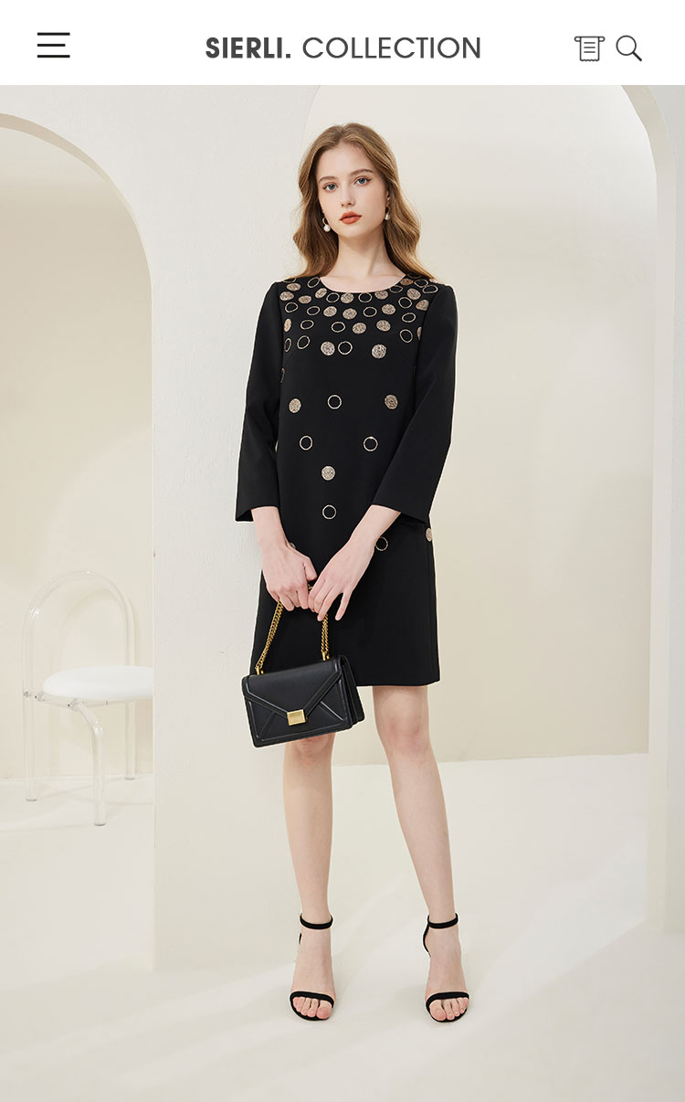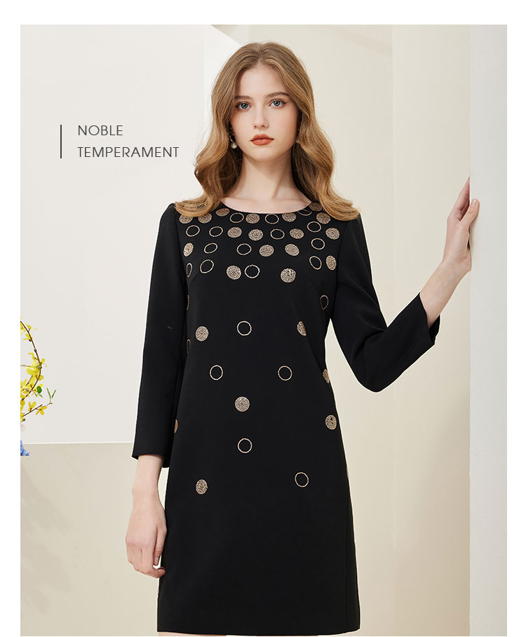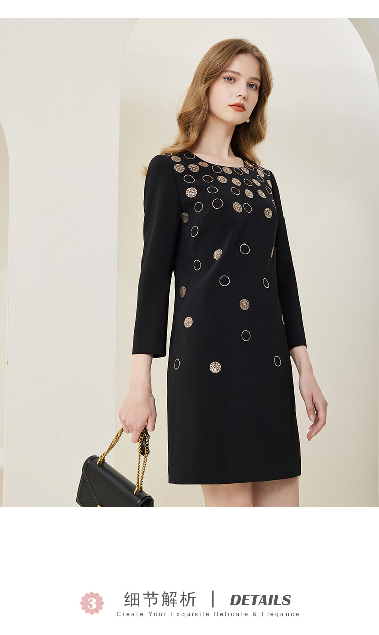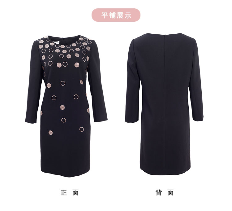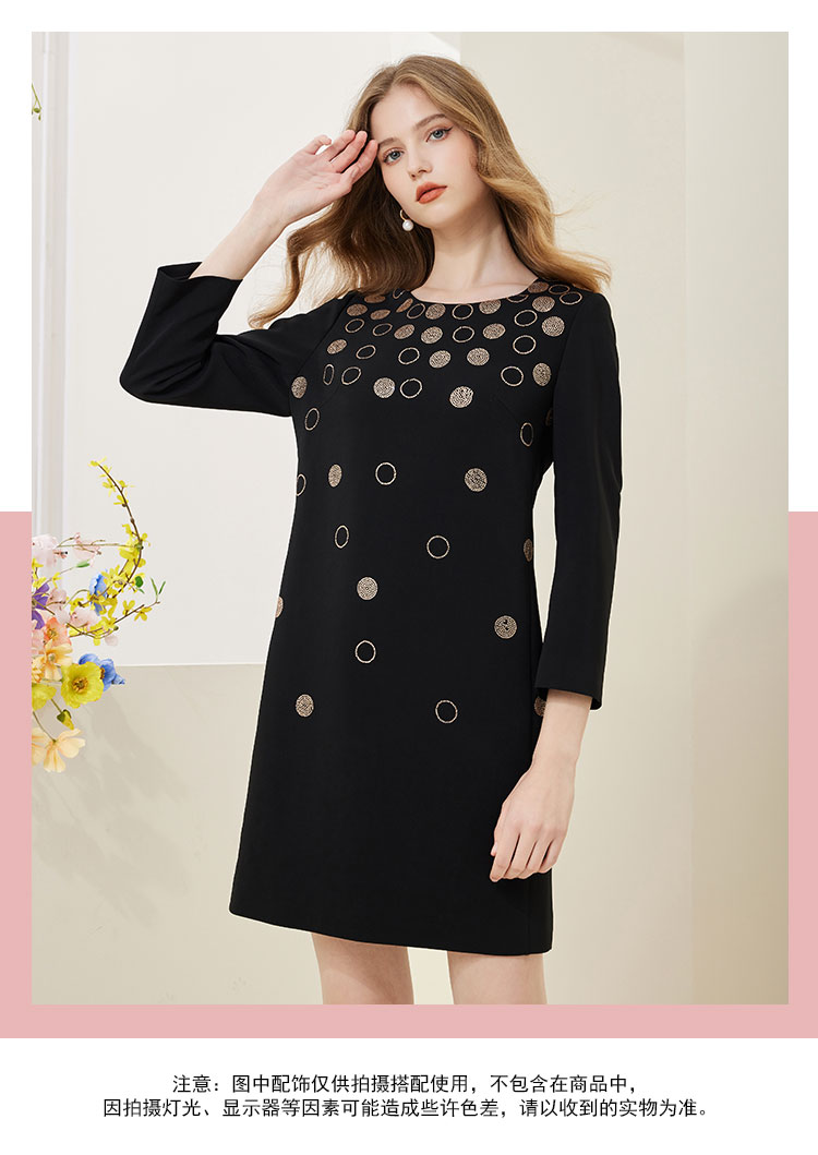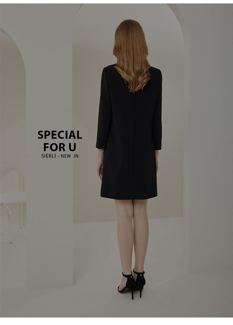 NA803斯尔丽[商场同款]春季新款圆领优雅修身显瘦长袖连衣裙纯色气质